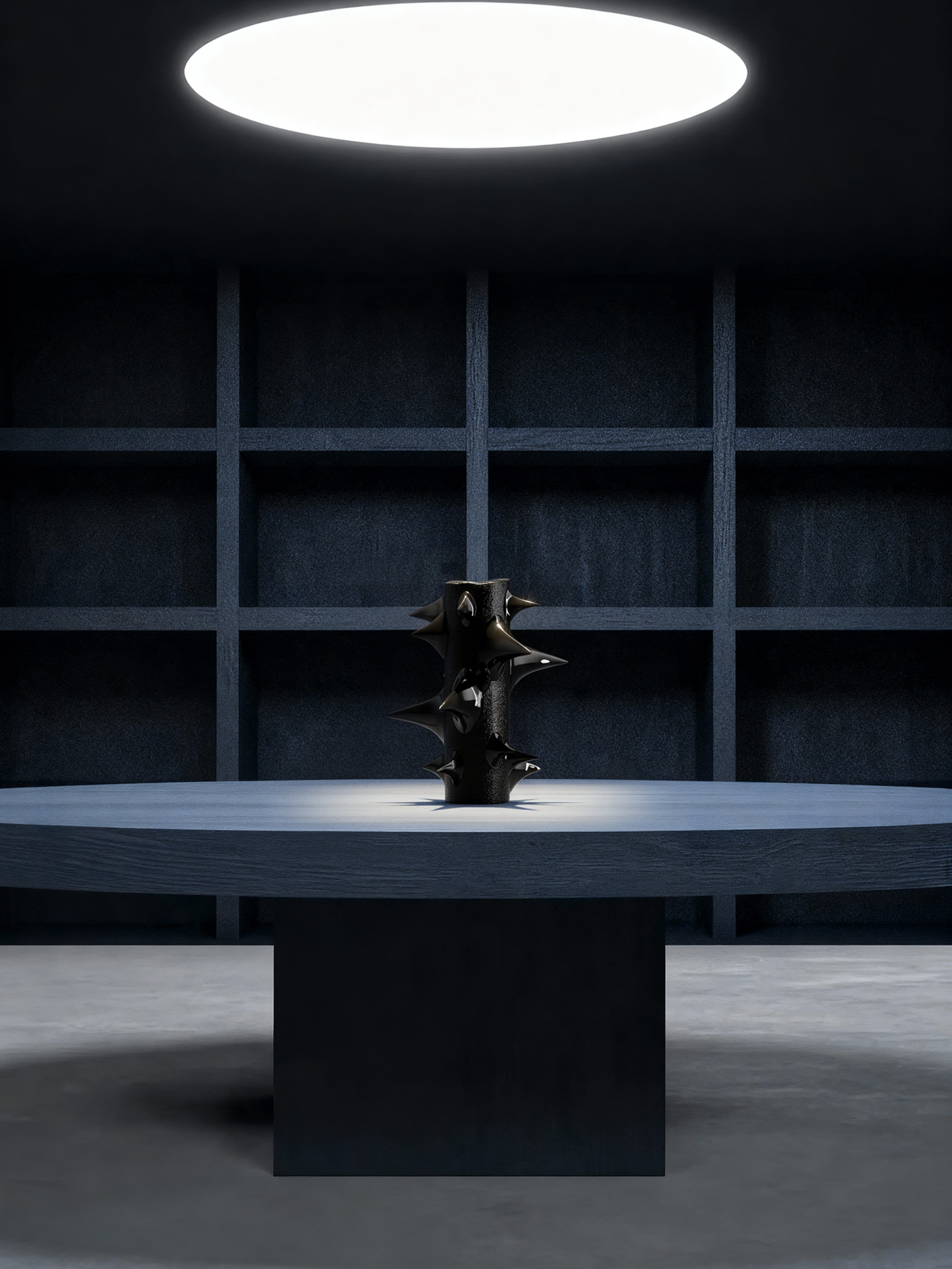 In addition to their predominantly on-screen design practice, Gast Studio now brings a fresh perspective to pottery — by blending traditional craftsmanship with digital innovation. Their unique series of vases is the result of a playful and ongoing exploration of CGI's material qualities, combined with the dynamic tension between manual and automated crafts. These vases are more than just decorative objects; they invite us to reflect on the ever-evolving connection between art and technology, where the lines between the physical and virtual realms of our times are beautifully blurred.