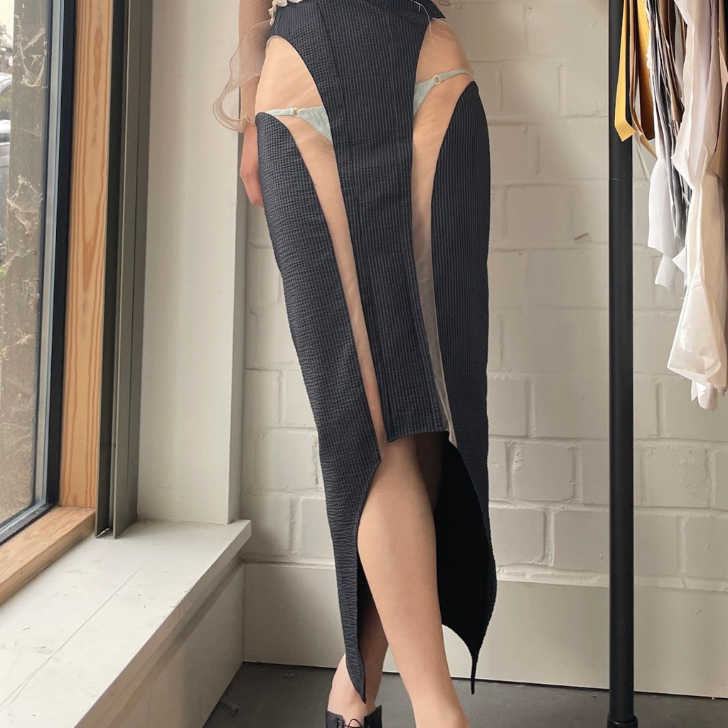 Seoul and London based independent fashion designer brand Gyouree Kim creates intricately layered womenswear that blends historical and contemporary elements. The creative process involves recycling off-cut and dead-stock fabrics to create one-of-a-kind corsetry and semi couture ready-to-wear. This process ensures that the designs are eco-friendly and helps to reduce waste in the fashion industry.