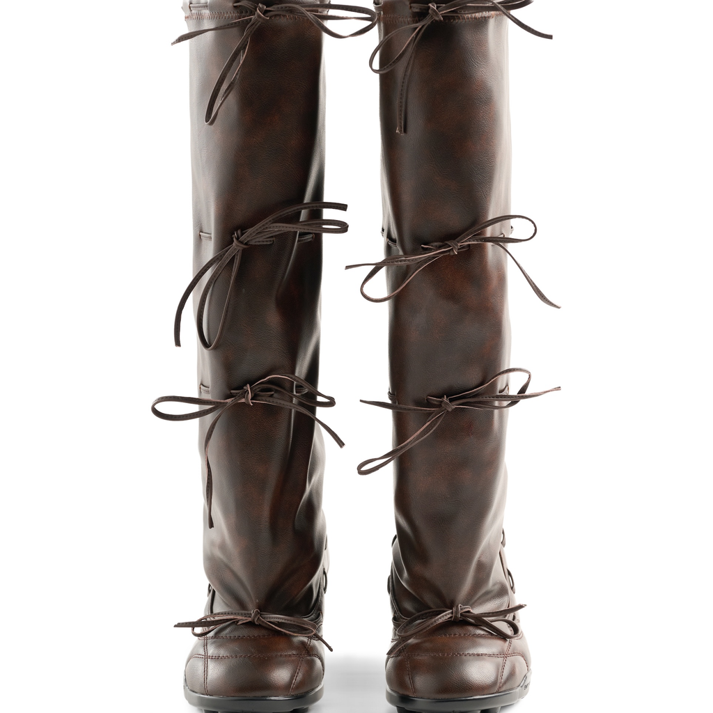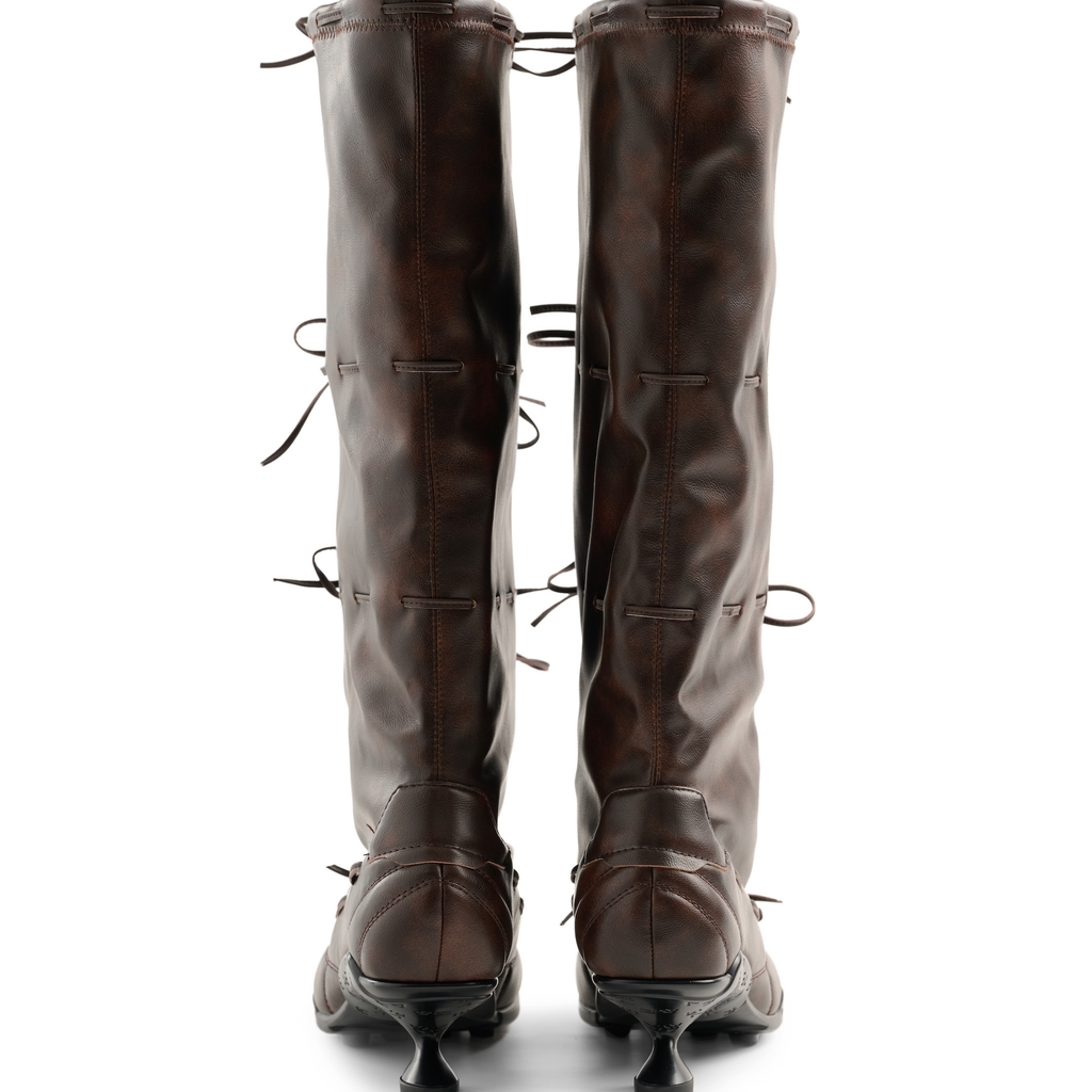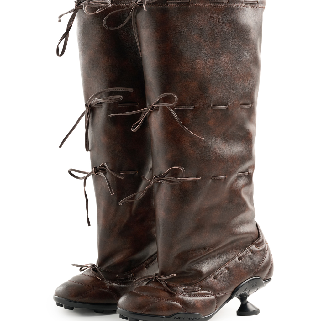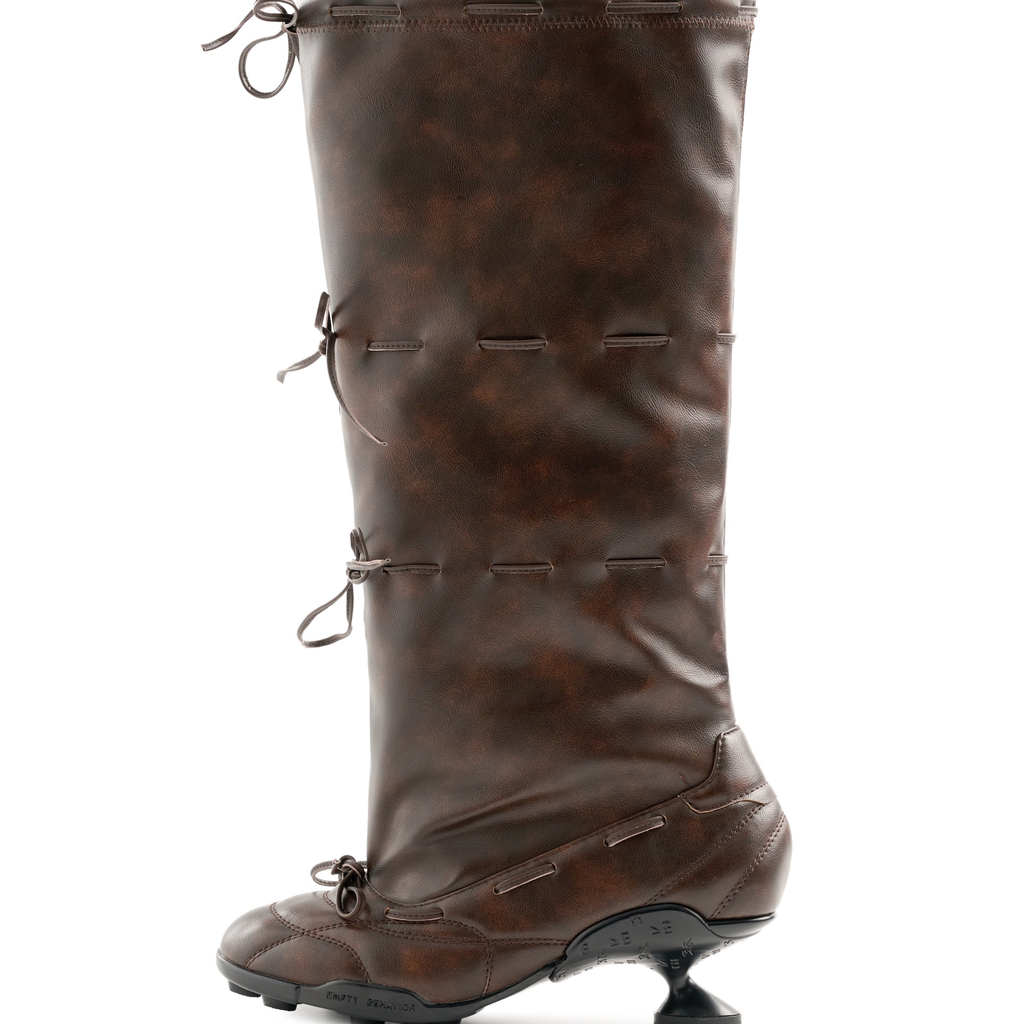 Strapped Ballet Boots Brown by EMPTY BEHAVIOR