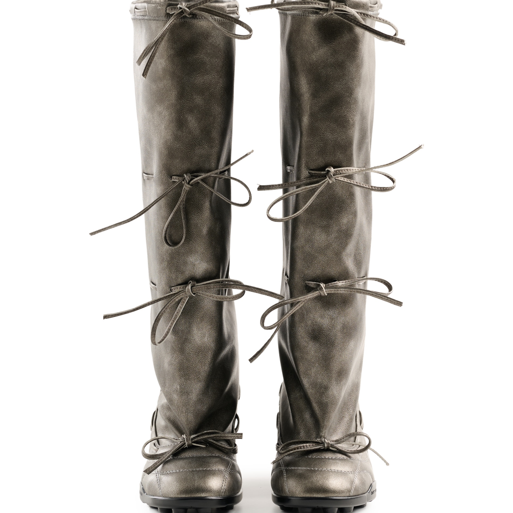 Strapped Ballet Boots Silver and Black by EMPTY BEHAVIOR