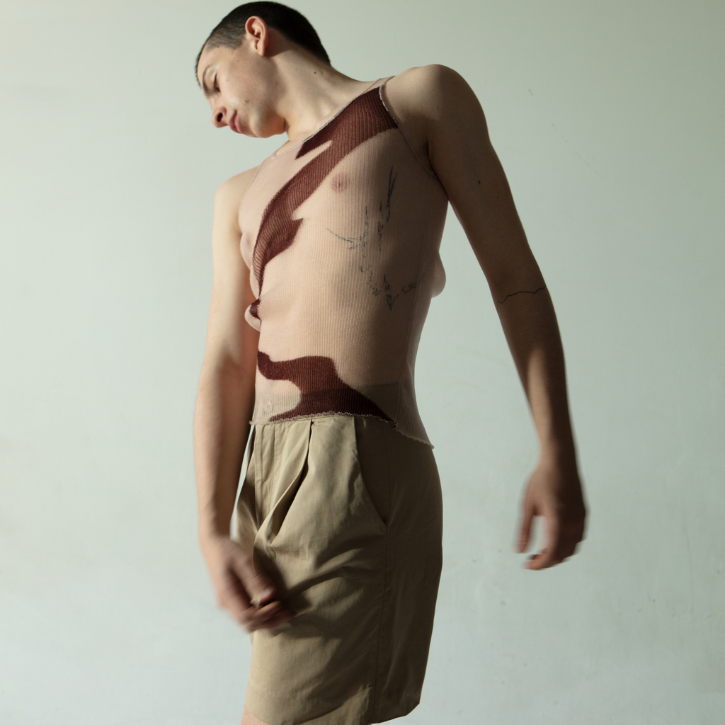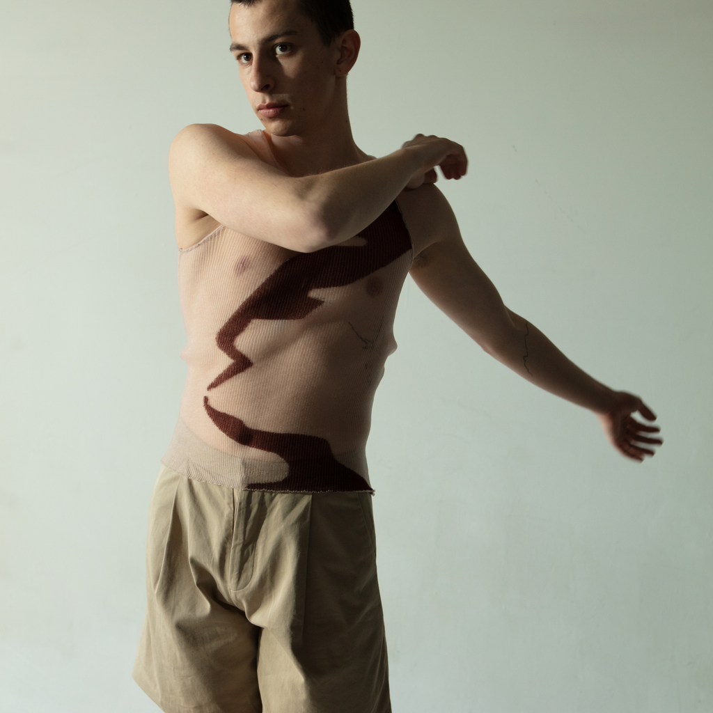 Khanh Brice Nguyen is a London based knitwear brand which offers a wardrobe of intimate and gender fluid garments. Inspired by contemporary dance, the label’s knits are draped directly onto the body, playfully enhancing the silhouette. Renowned for its signature 'drop stitch' top, each piece contours the wearer’s body in a new light.