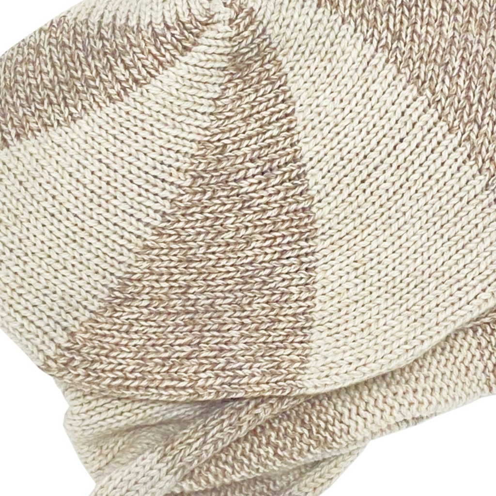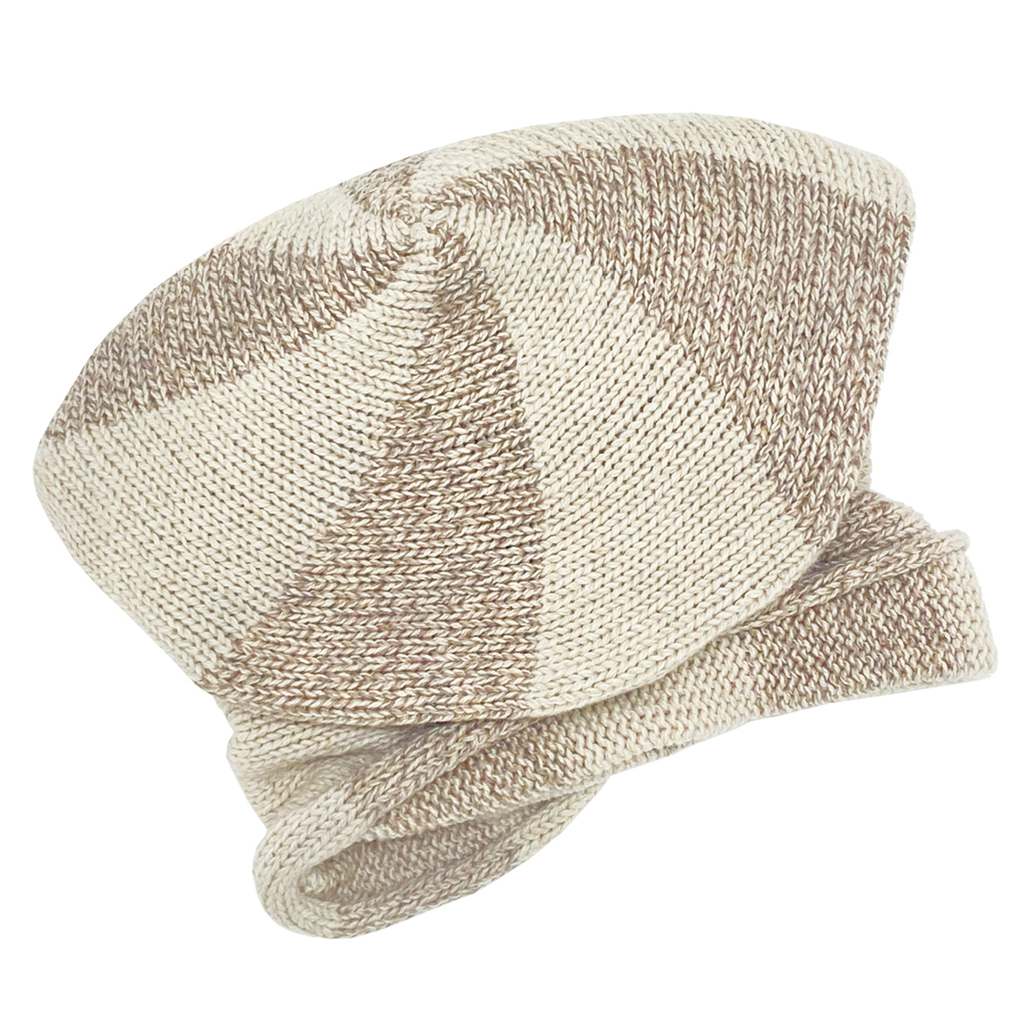 The Stripy Snood Top by Ilana Blumberg features a long-sleeve design in Navy and Oatmeal. It includes an extra-long snood neck and is expertly made by a of 2 in our London studio using premium knitting techniques.