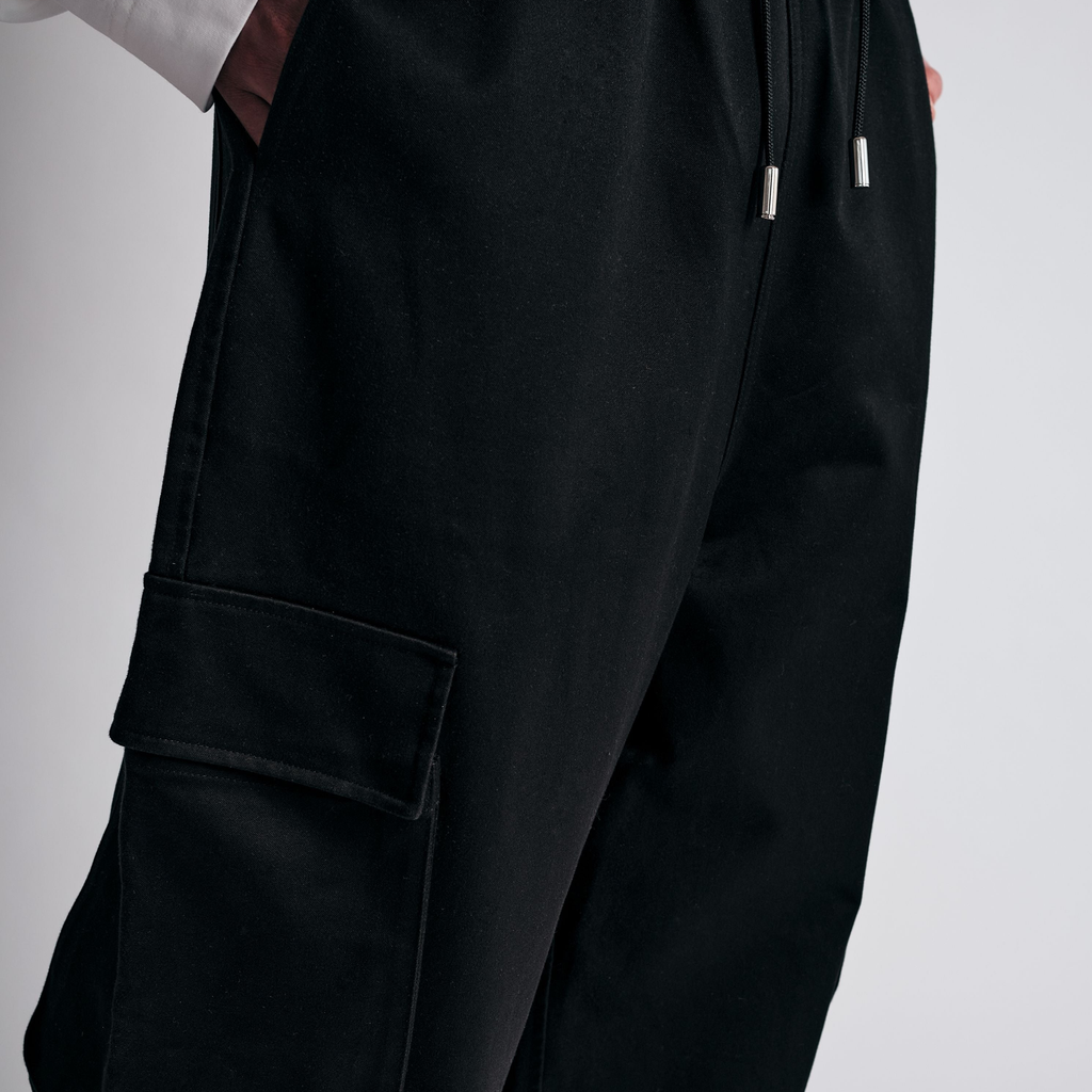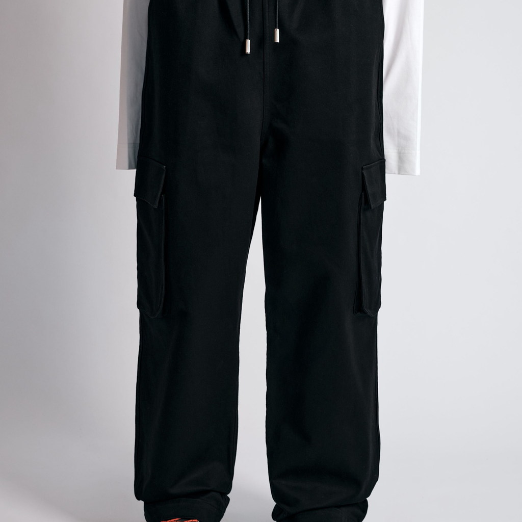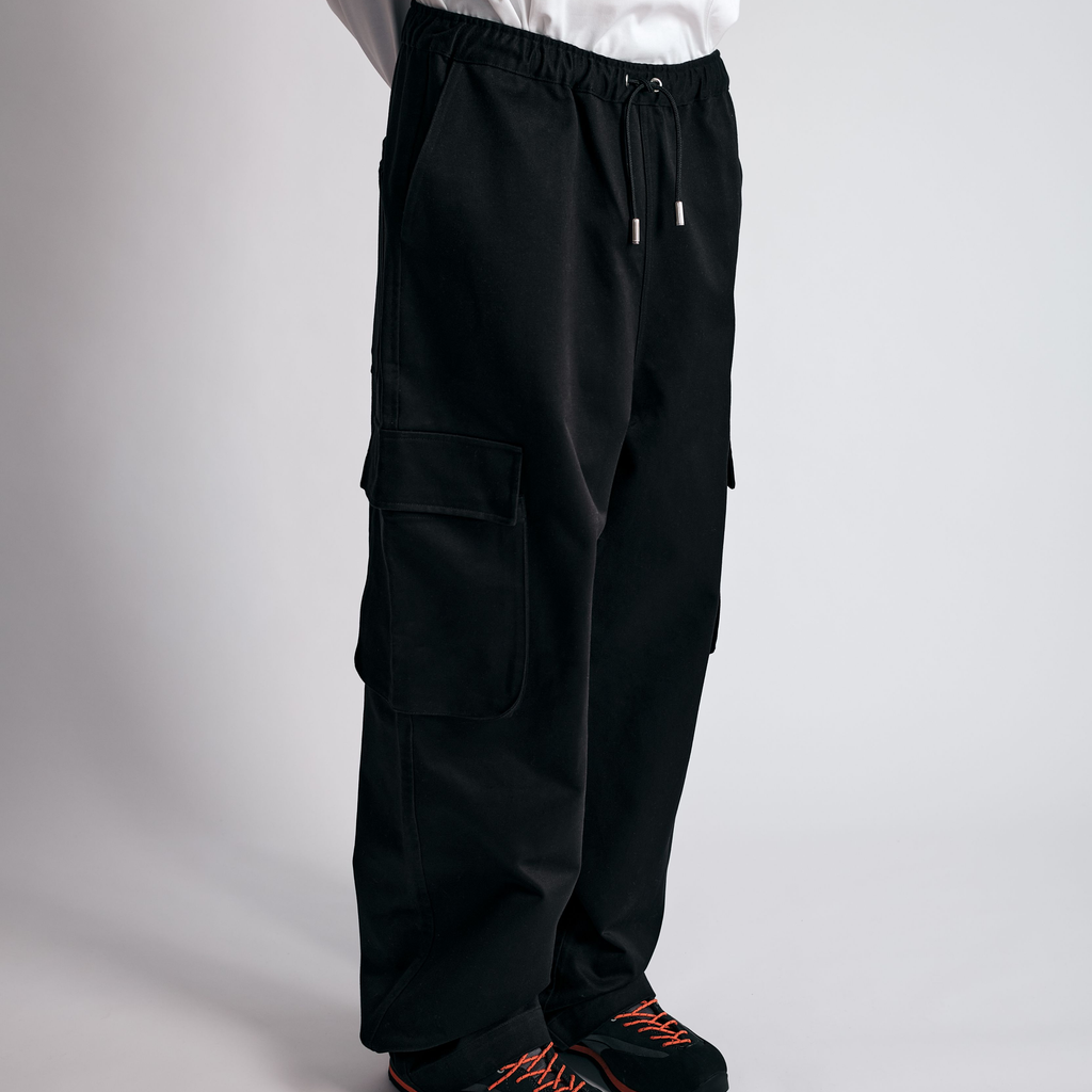 It is a work-like item with a slight tapered addition to the wide-eyed cargo pants silhouette.