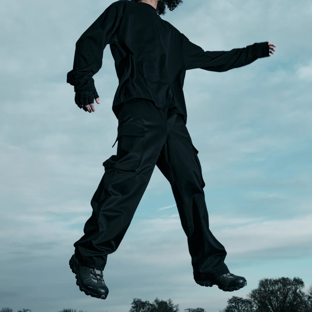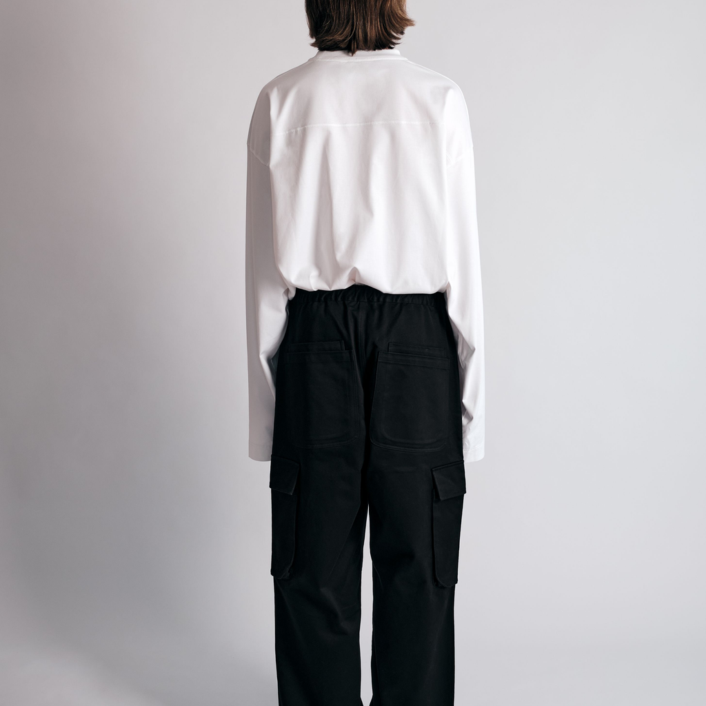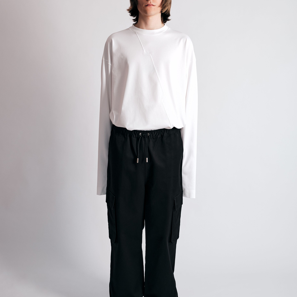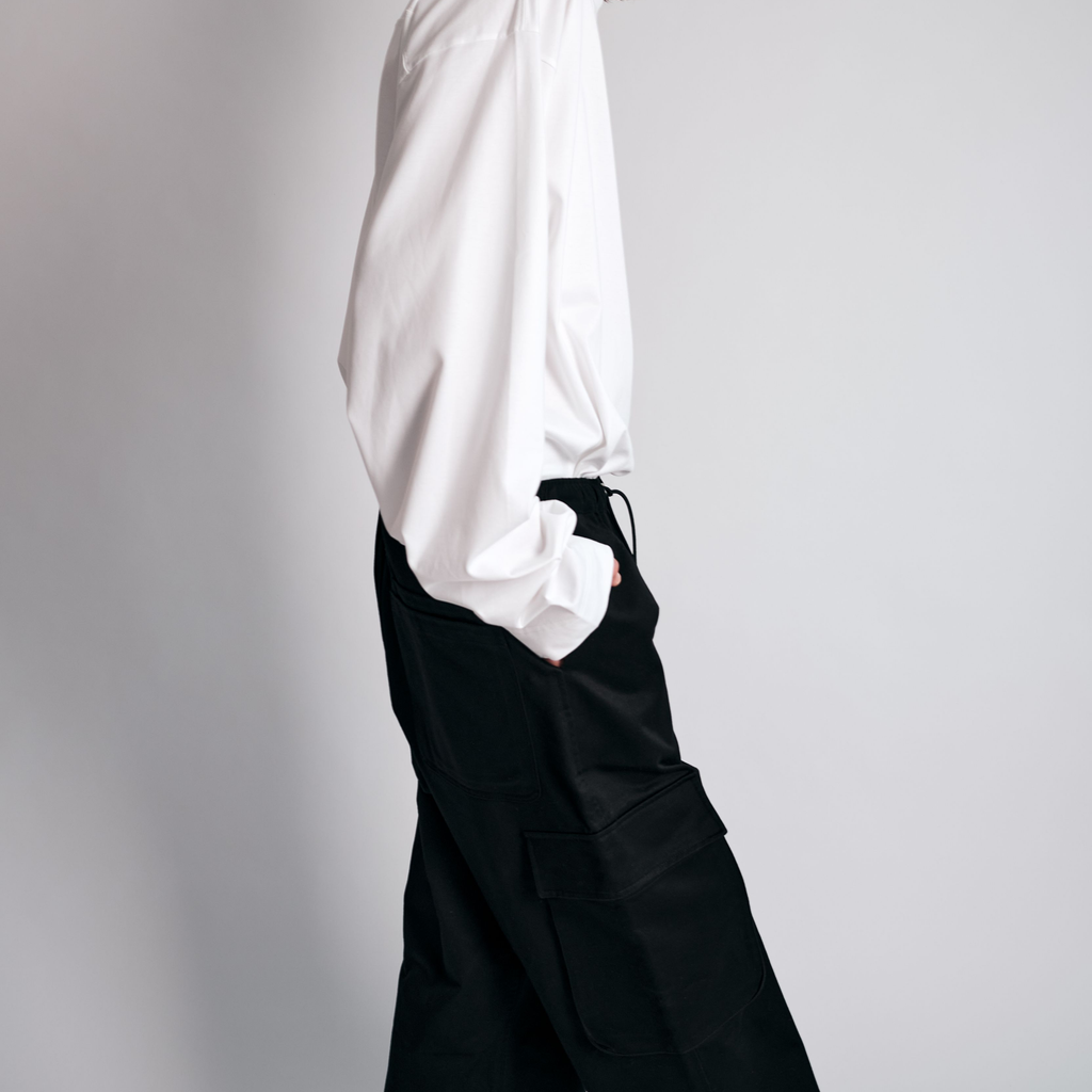 It is a work-like item with a slight tapered addition to the wide-eyed cargo pants silhouette.