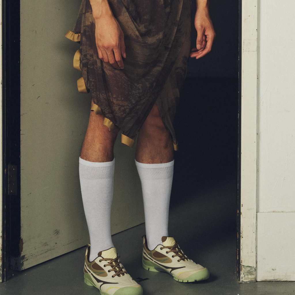 Since its inception in 2019, untitlab® has embraced a radical approach to footwear and accessories. The Shanghai-founded, London-based label, led by the trio Tian Cai, Justin Zen, and Sans (Peng Xin), draws inspiration from formal wear, outdoor clothing, and BDSM attire, to challenge traditional classifications. Examples include hybrid boots and loafers with robust lug soles and avant-garde heels, all crafted from biodegradable vegan leather.