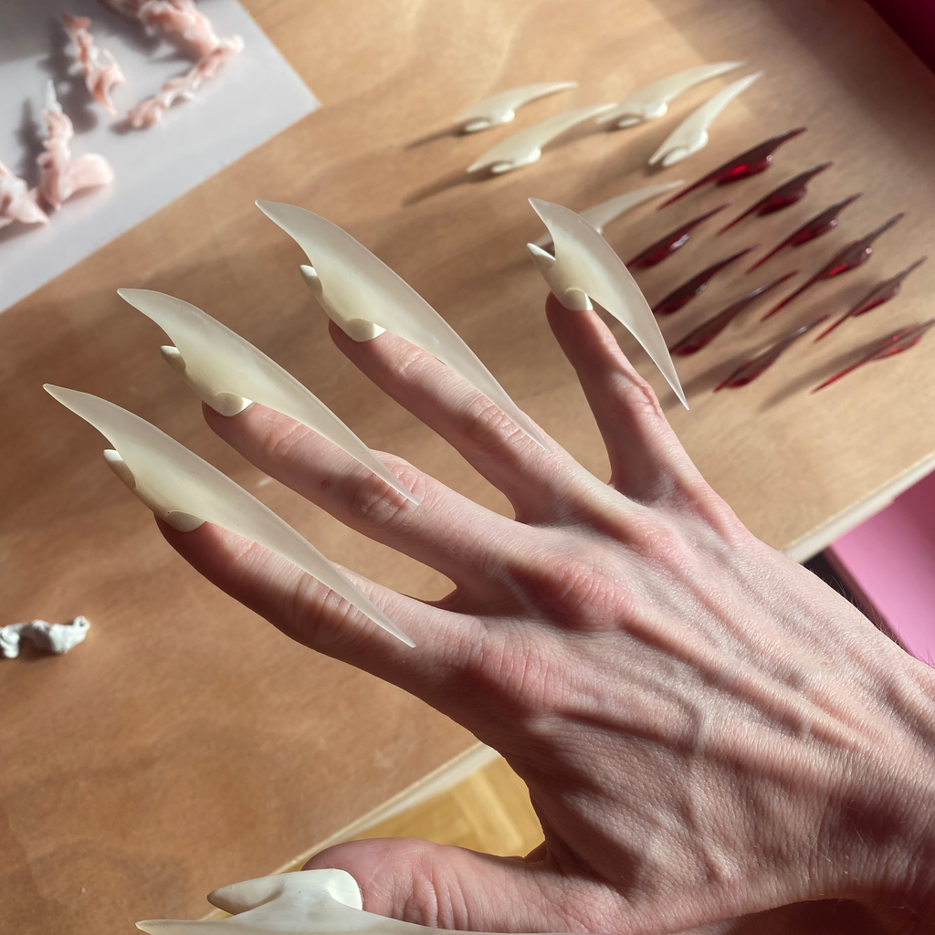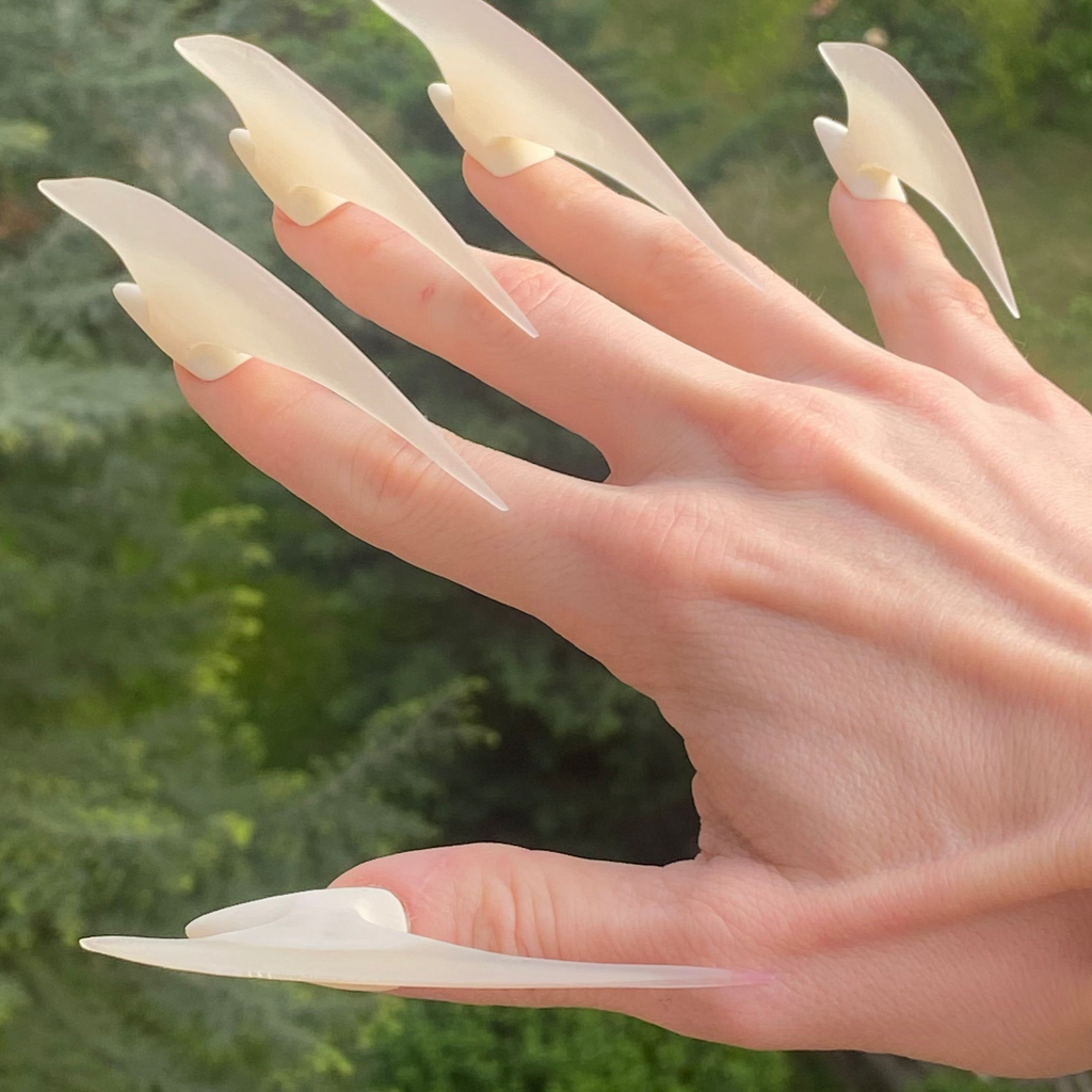 Set of 10 handcrafted, reusable TD Claws Milk nails by Texto Dallas. 3d printed and painted by hand.
