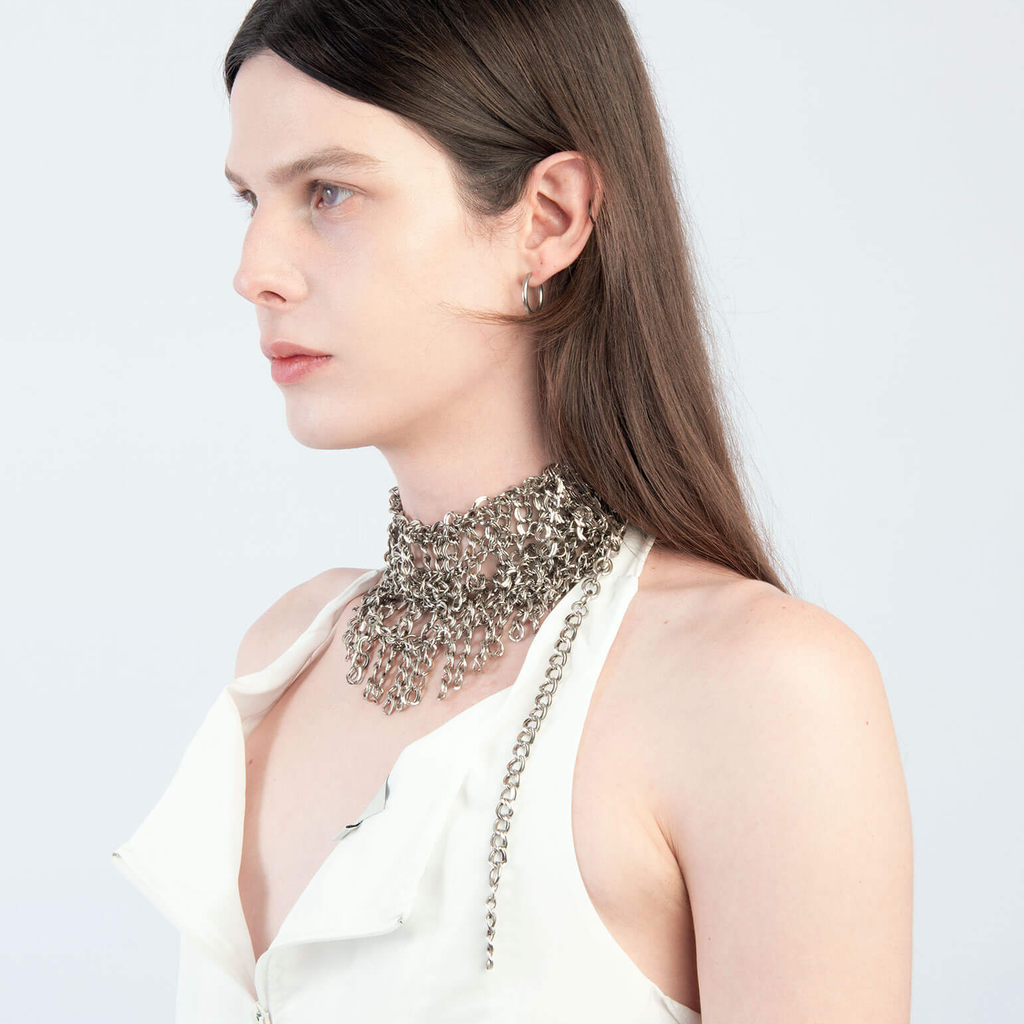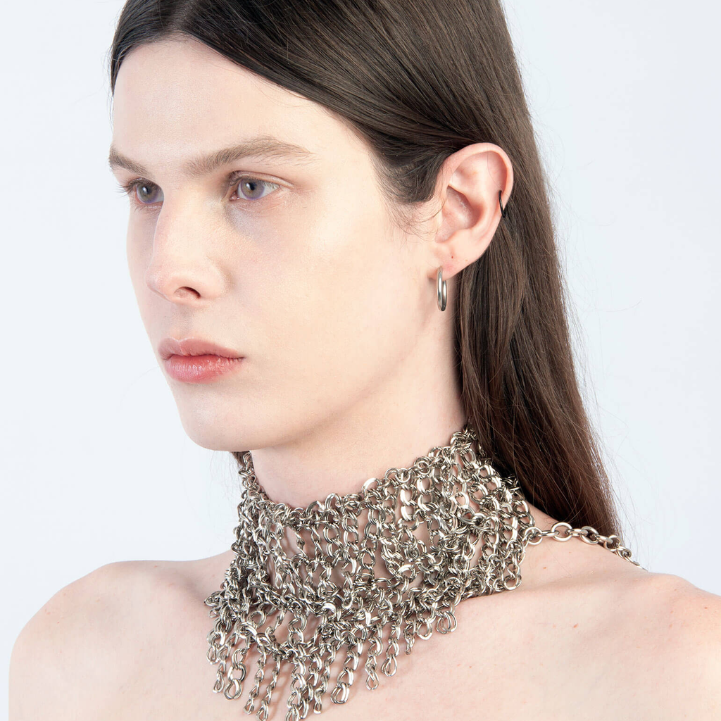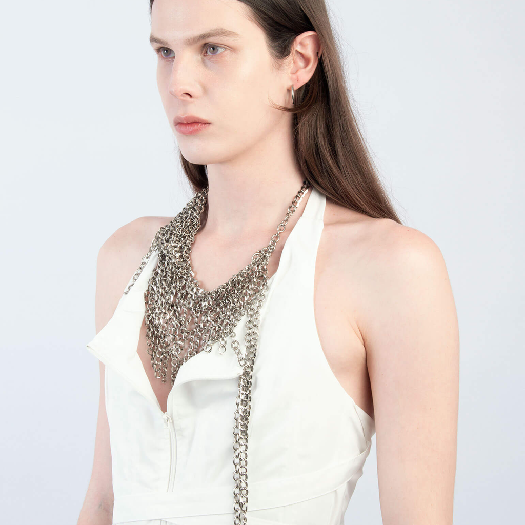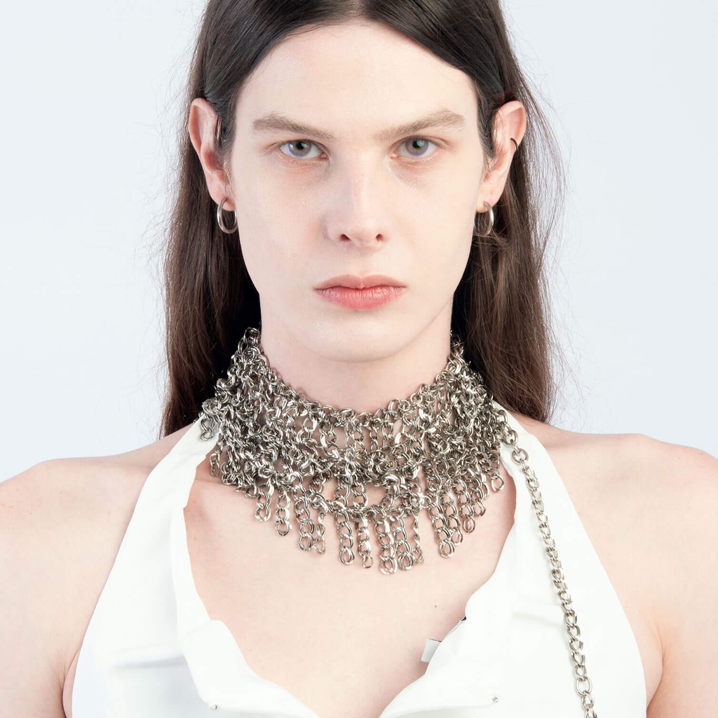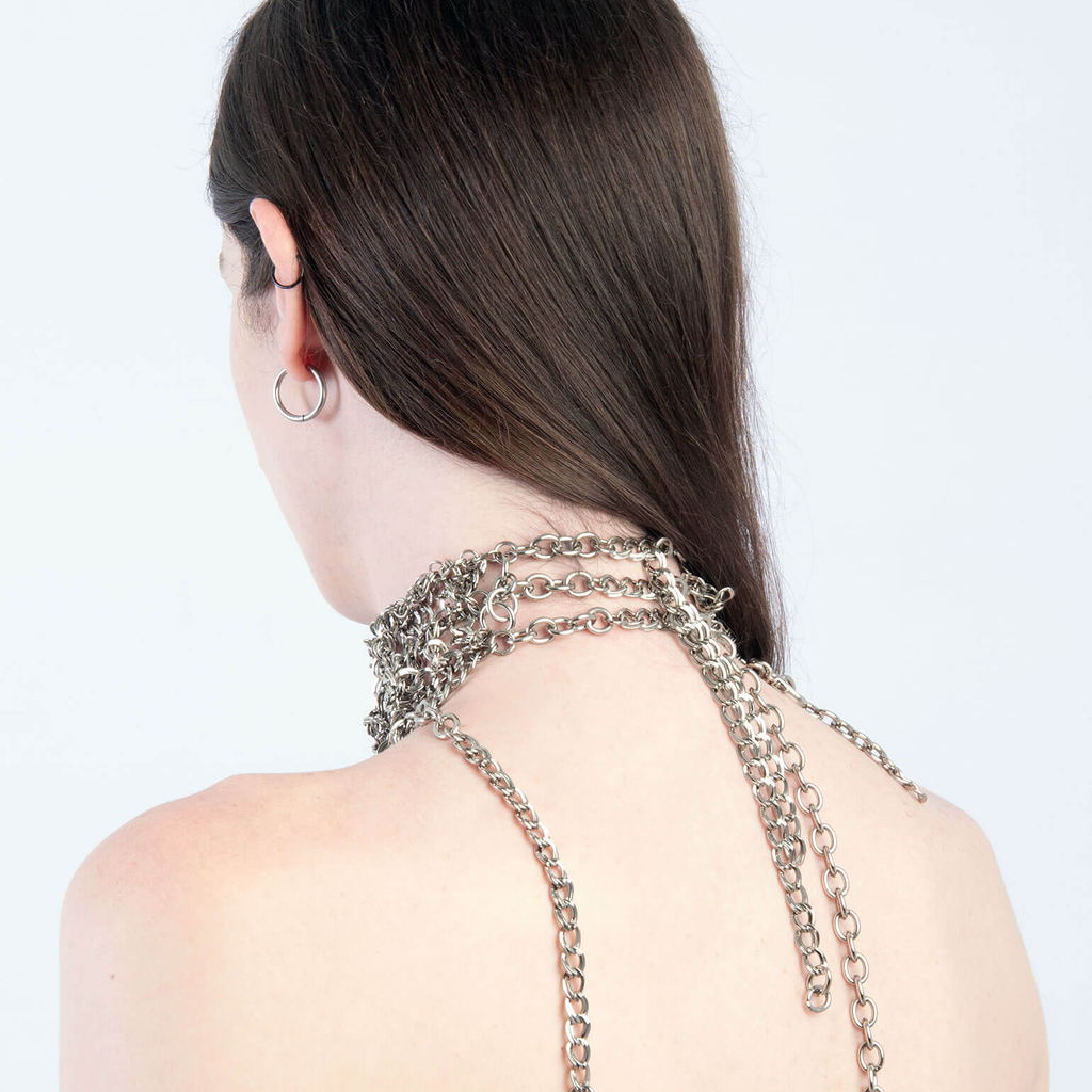 Jalaconda is a multidisciplinary artistic project, focused on the body. The LGBTQIA+ brand researches unconventional materials, such as latex, steel and natural Brazilian stones. They aim to discuss the place of manual work and personal adornment, knowing that clothes are fully political as they are from a country historically full of complexities.