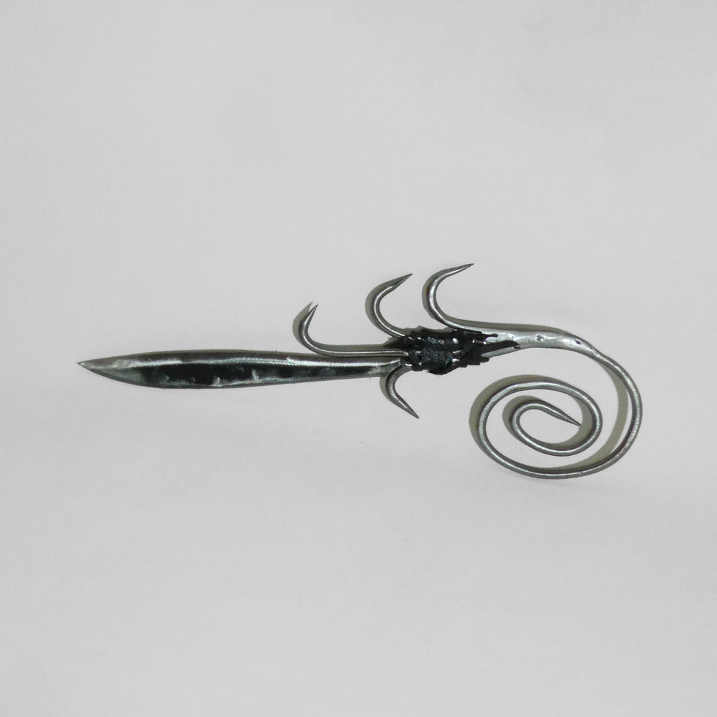 Chloé Arrouy (France, 1993, lives and works in Brussels, Belgium) explores subversion and mutiny in her practice, moving between themes of beauty and pain, sensuality and austerity. Through sculpture of objects, she explores the emotional power of forms, drawing inspiration from bondage, adolescence. Her sculptural practice takes an experimental approach to traditional metalworking techniques, and the materials she uses are mainly salvaged, sometimes directly from obsolete domestic objects. Her work is about life, love, culture and being a young woman today, with occasional references to medieval societies and their troubling forms.