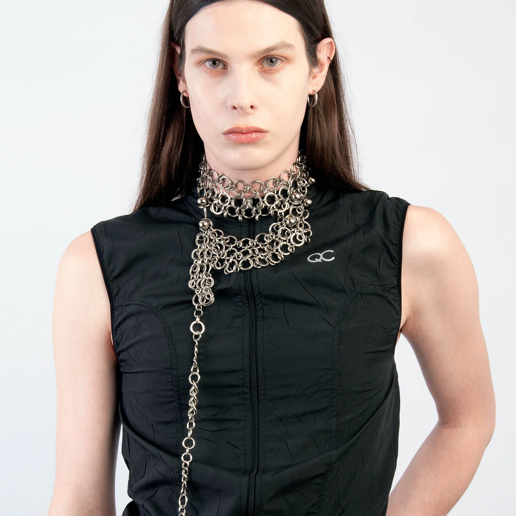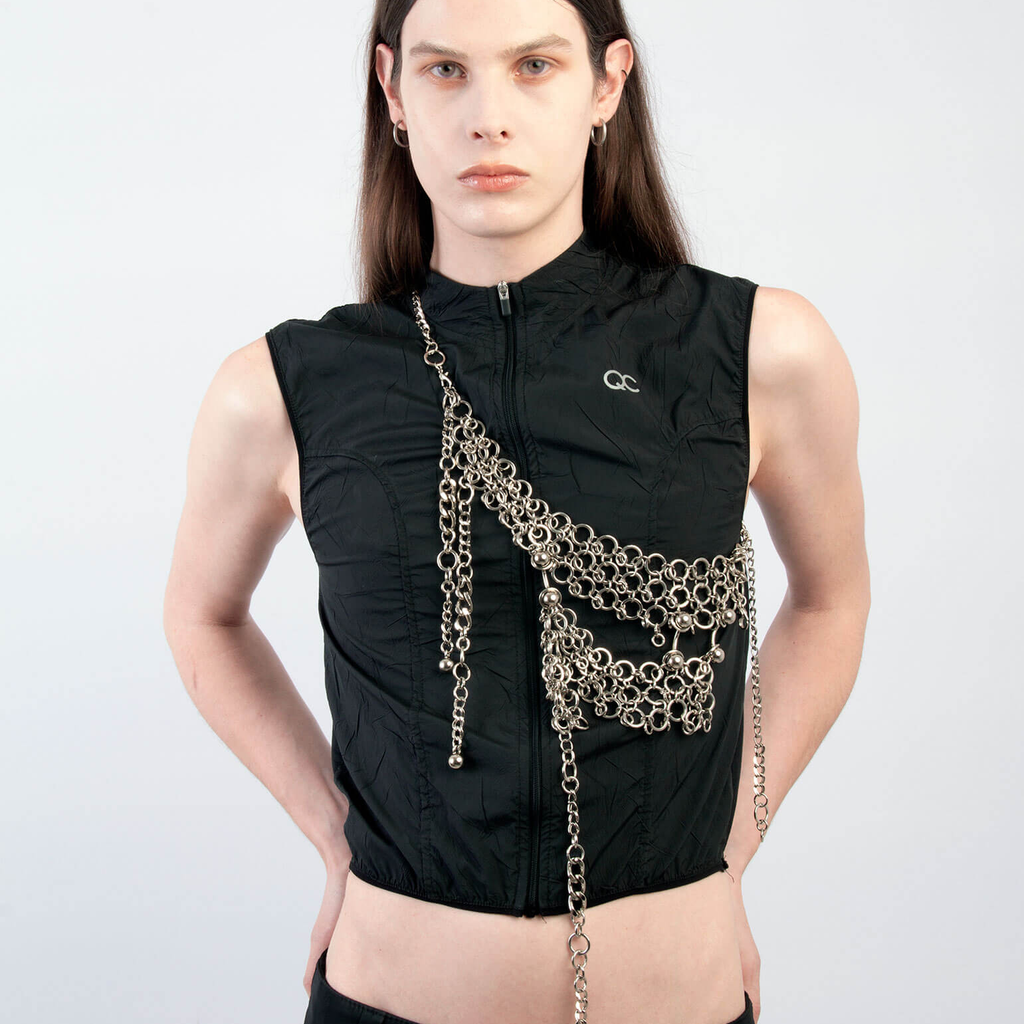 Jalaconda is a multidisciplinary artistic project, focused on the body. The LGBTQIA+ brand researches unconventional materials, such as latex, steel and natural Brazilian stones. They aim to discuss the place of manual work and personal adornment, knowing that clothes are fully political as they are from a country historically full of complexities.