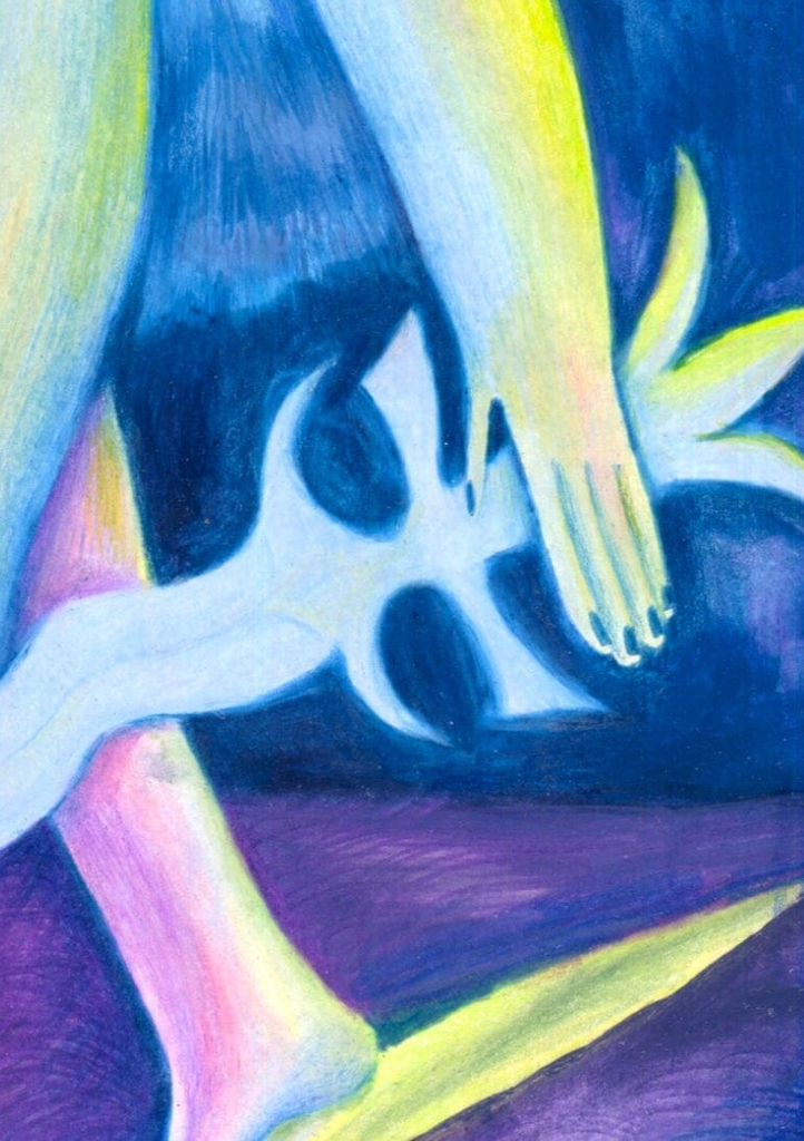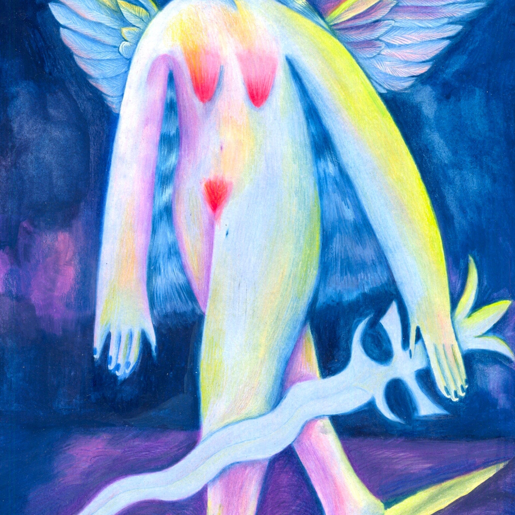Izabela Wilk known as Devils Claws is an artist based between Poland and England. Her art is inspired by her farm life and folk tales from around the world. Izabela explores eroticism, by interpreting the archetypical feminine figures, myths, and her own history. She lives in the countryside with dogs, goats and a cat, the animals are often seen in her art as companions. She explores these themes by painting and drawing, on paper and ceramics.