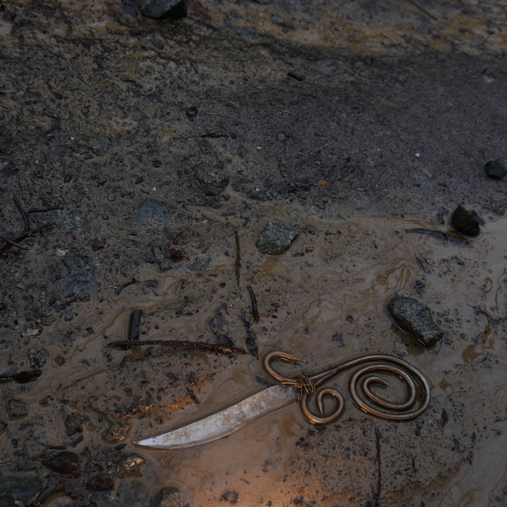 Chloé Arrouy (France, 1993, lives and works in Brussels, Belgium) explores subversion and mutiny in her practice, moving between themes of beauty and pain, sensuality and austerity. Through sculpture of objects, she explores the emotional power of forms, drawing inspiration from bondage, adolescence. Her sculptural practice takes an experimental approach to traditional metalworking techniques, and the materials she uses are mainly salvaged, sometimes directly from obsolete domestic objects. Her work is about life, love, culture and being a young woman today, with occasional references to medieval societies and their troubling forms.