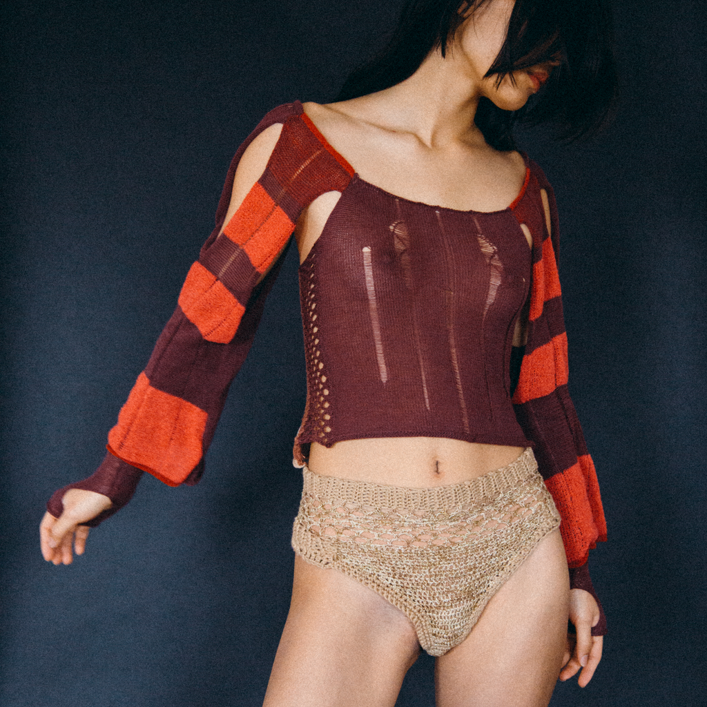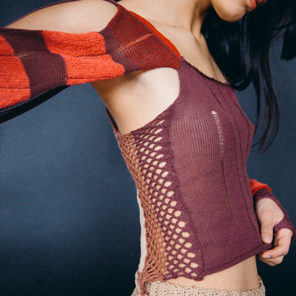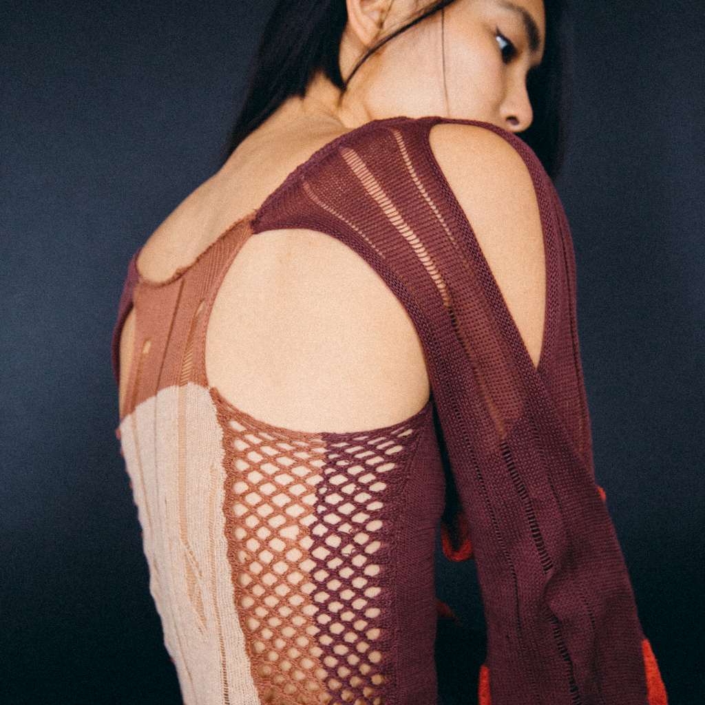 Lily Yeung is a designer living and working in London. In her work she views fibre as an extension of self, a way to communicate experience, taking inspiration from the geometry and patterns that can be found in her environment, the intuitive and organic forms that create themselves when the mind is taught to let your intuition translate to form, line, and colour.