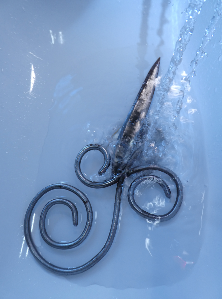 Chloé Arrouy (France, 1993, lives and works in Brussels, Belgium) explores subversion and mutiny in her practice, moving between themes of beauty and pain, sensuality and austerity. Through sculpture of objects, she explores the emotional power of forms, drawing inspiration from bondage, adolescence. Her sculptural practice takes an experimental approach to traditional metalworking techniques, and the materials she uses are mainly salvaged, sometimes directly from obsolete domestic objects. Her work is about life, love, culture and being a young woman today, with occasional references to medieval societies and their troubling forms.