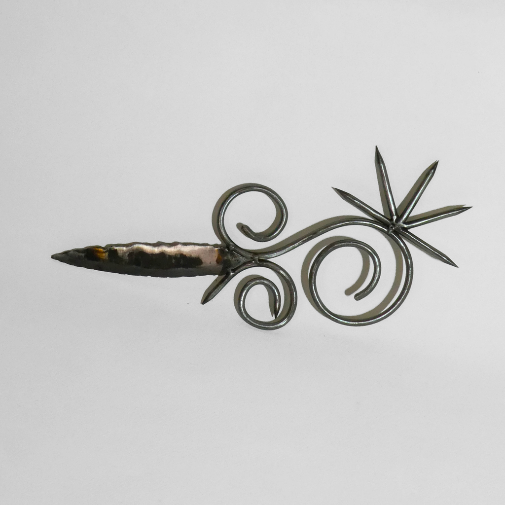 Chloé Arrouy (France, 1993, lives and works in Brussels, Belgium) explores subversion and mutiny in her practice, moving between themes of beauty and pain, sensuality and austerity. Through sculpture of objects, she explores the emotional power of forms, drawing inspiration from bondage, adolescence. Her sculptural practice takes an experimental approach to traditional metalworking techniques, and the materials she uses are mainly salvaged, sometimes directly from obsolete domestic objects. Her work is about life, love, culture and being a young woman today, with occasional references to medieval societies and their troubling forms.