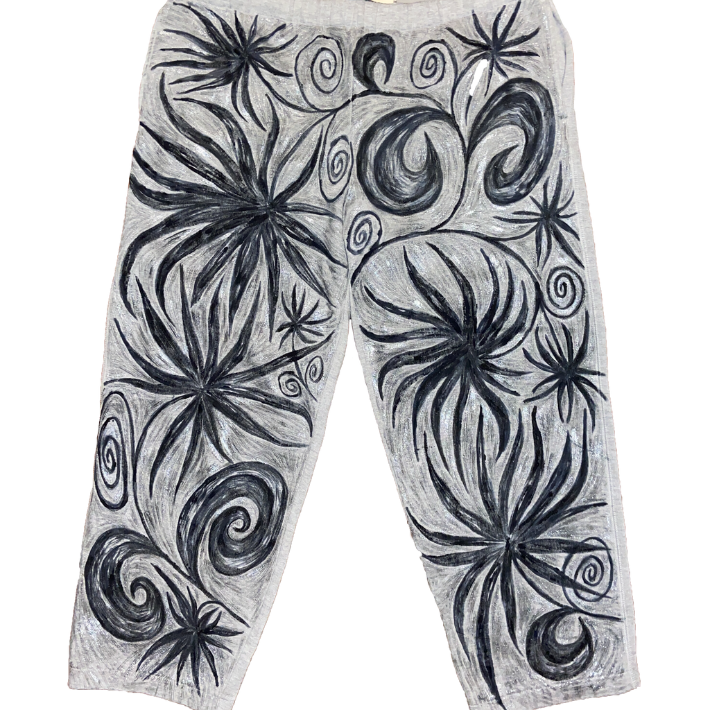 Hand painted with bleach and textile paint