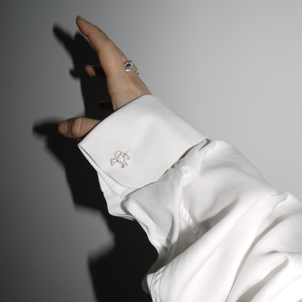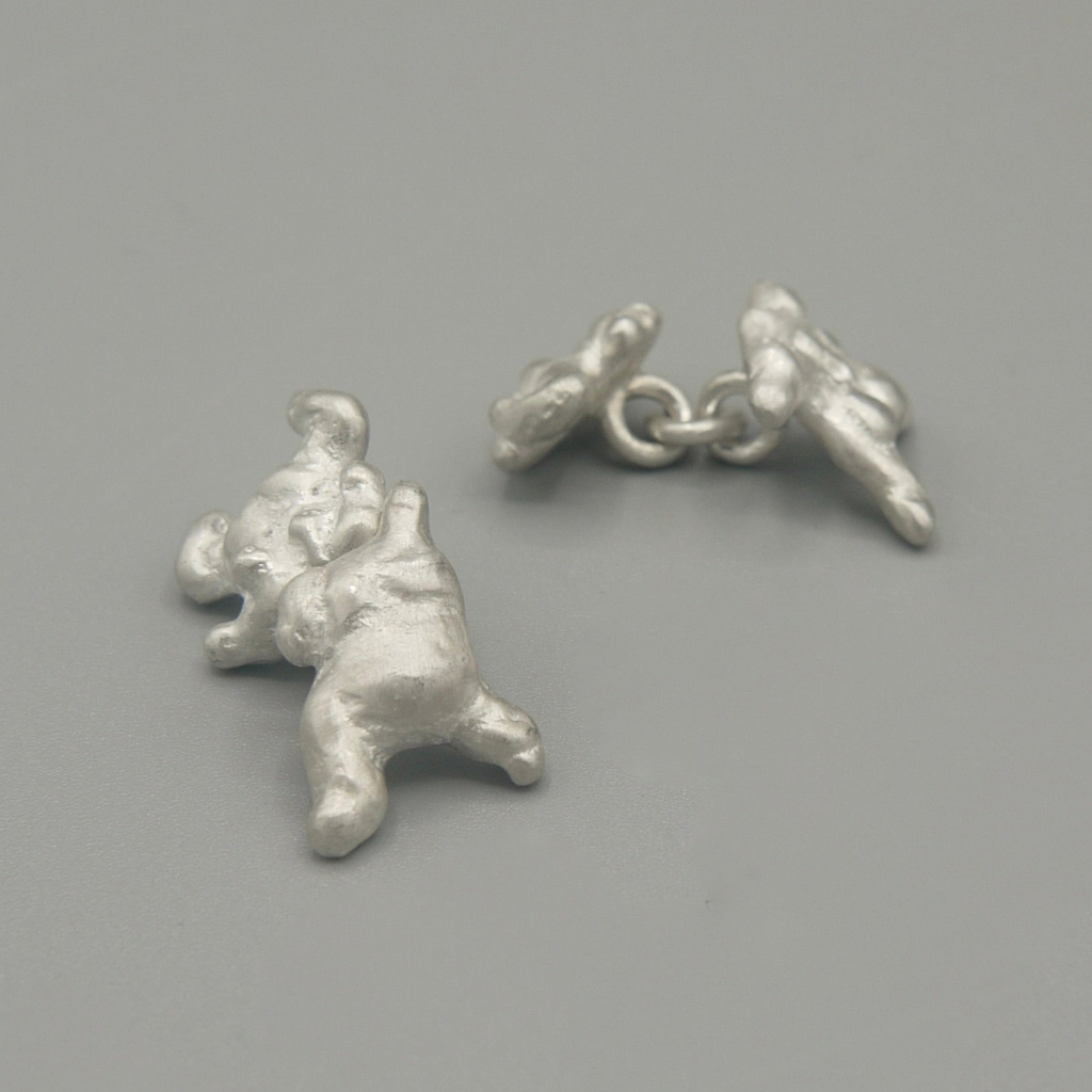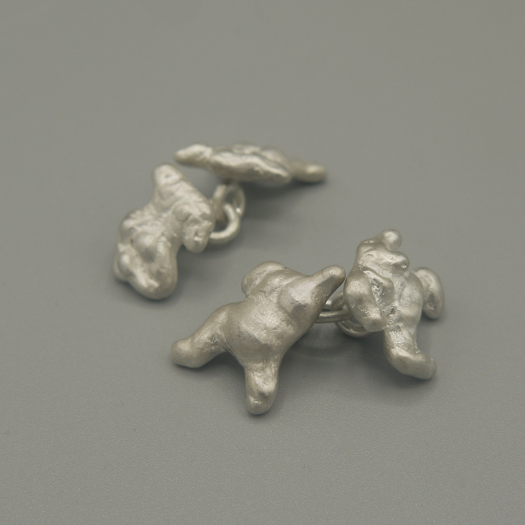 Cuff links made from four hand cast dancing figures, collaboration with SBA Label
