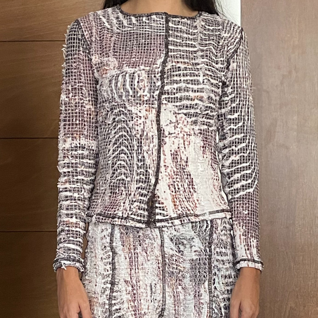 The image is then heat press printed into our hand woven stretch weave textile.
