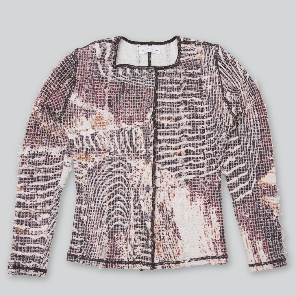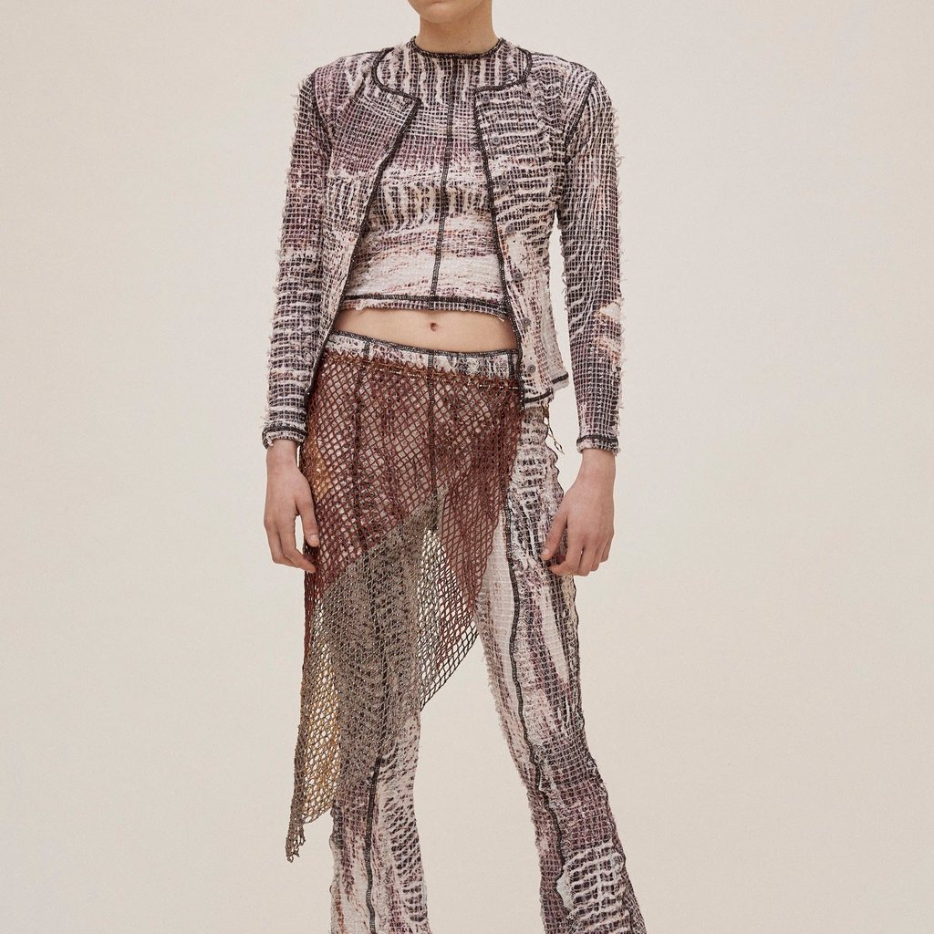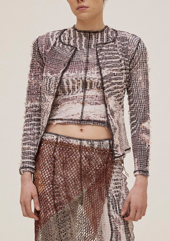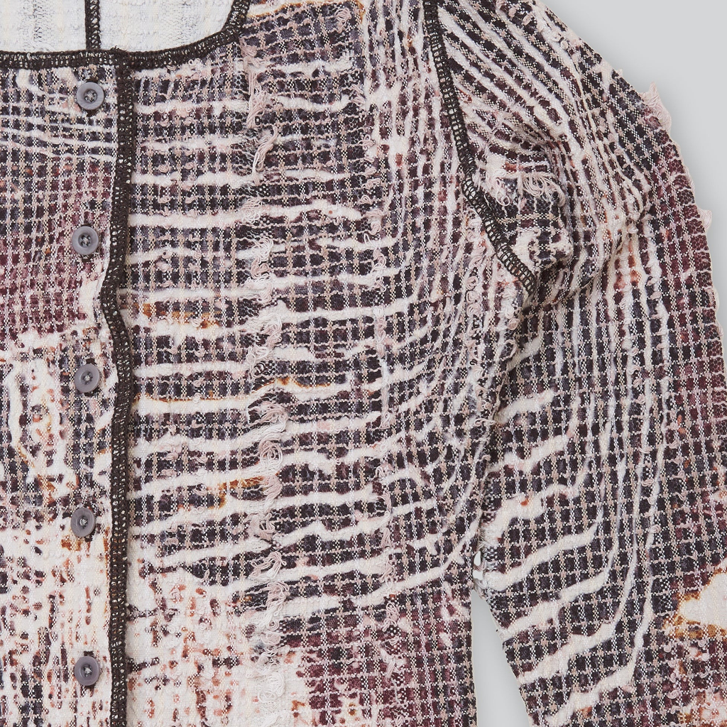 The print is the result of distorted bird view images of rice fields.