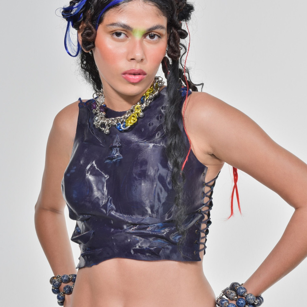 Organic latex top handmade with craftsmen in the Amazon rainforest.