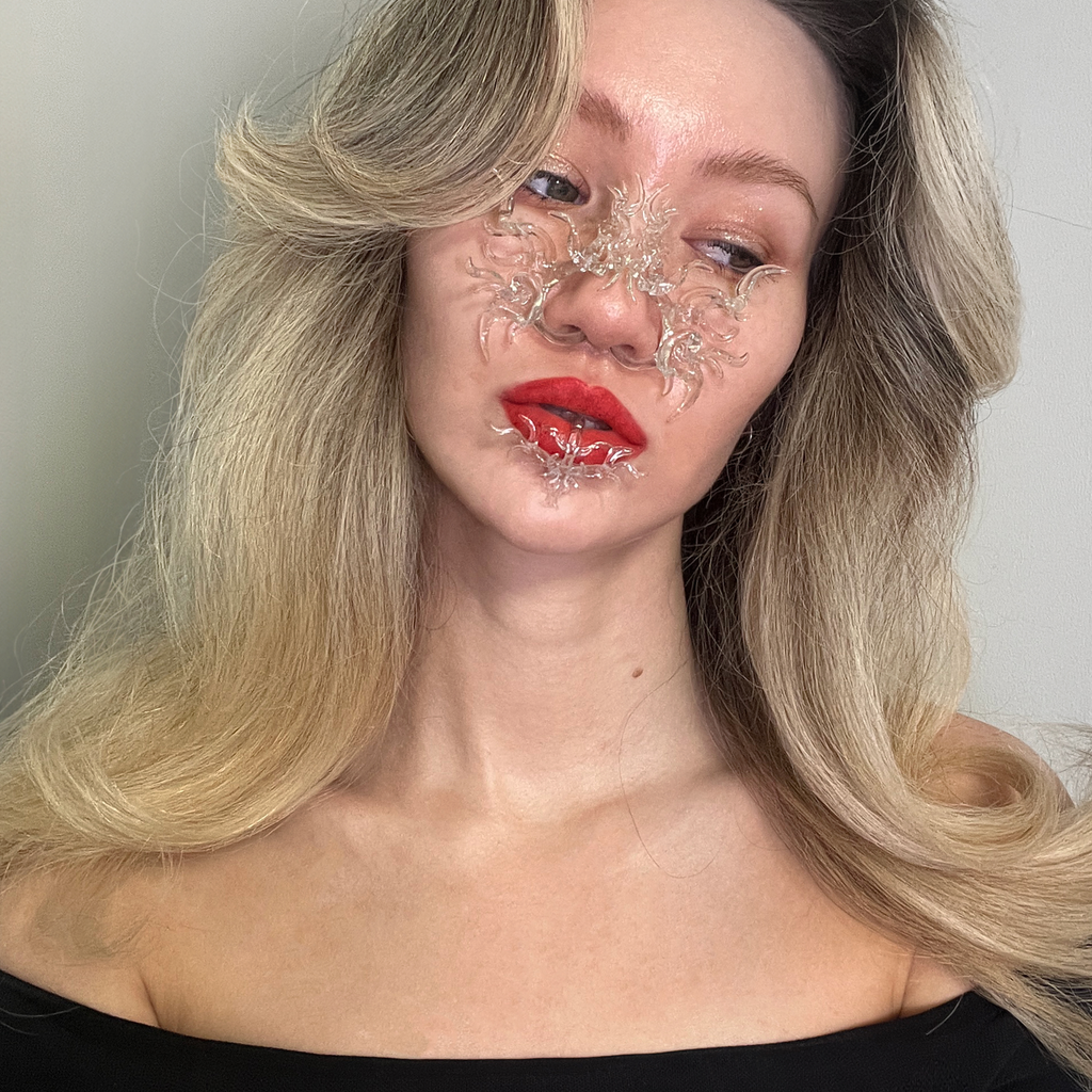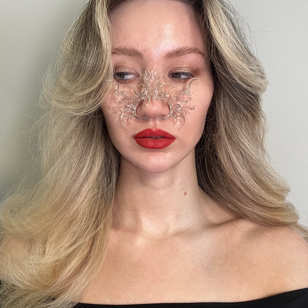 3D-printed organic-shaped Nose cuff. Sculpted and finished by hand to achieve a unique design. Feel free to style and combine with a Lip cuff (as in the last photo).
