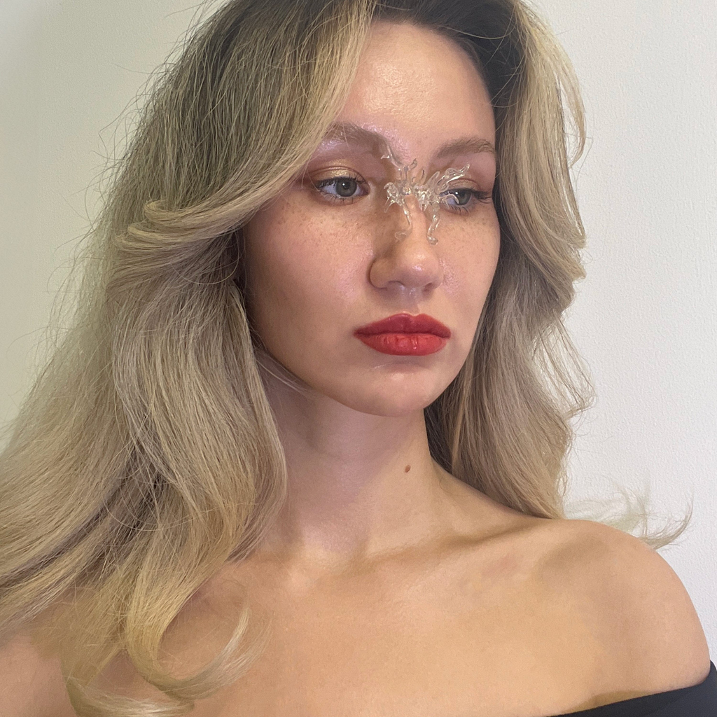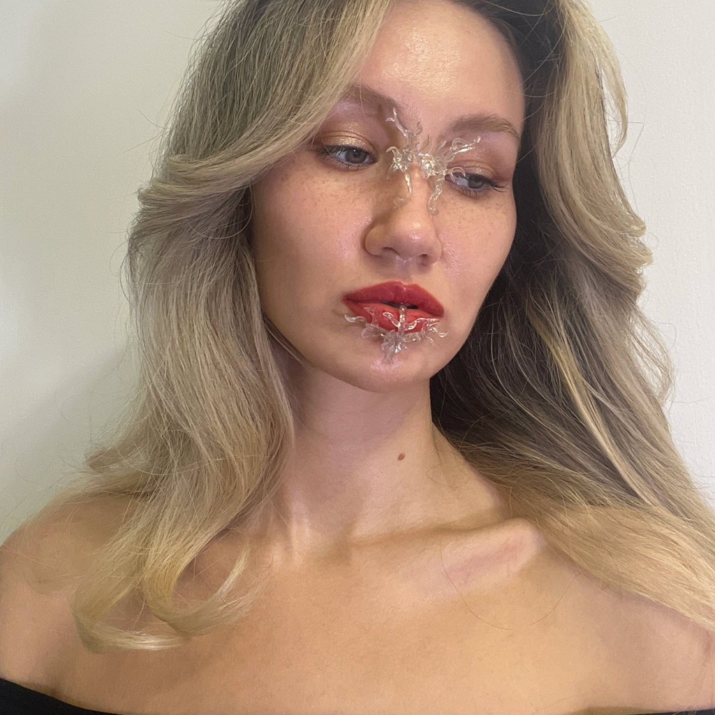 3D-printed organic-shaped Nose cuff. Sculpted and finished by hand to achieve a unique design. Feel free to style and combine with a Lip cuff (as in the last photo). *This type of cuff does not have strong support on the nose. For wearing, you may need to additionally secure it using makeup glue or consider selecting a larger cuff (Nose cuff M). Materials: ECO Plant-Based UV Resin.