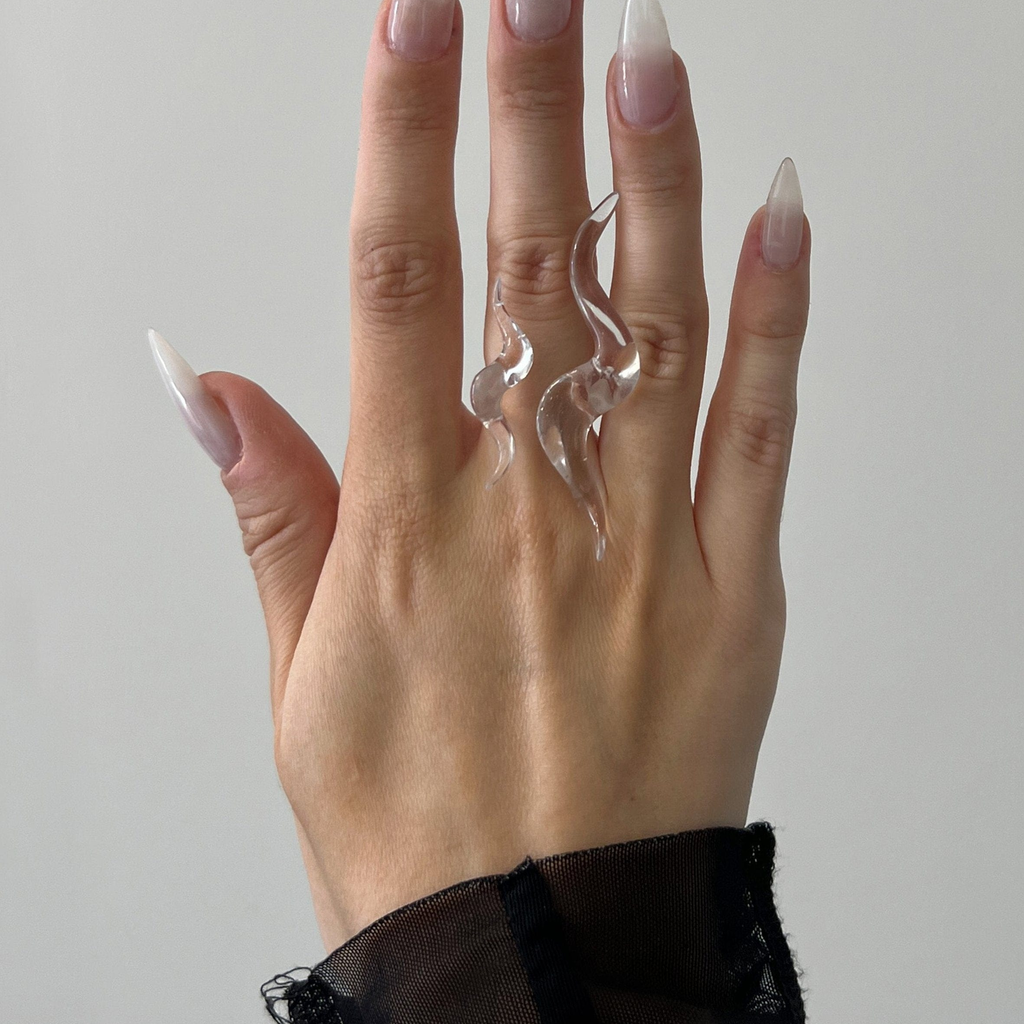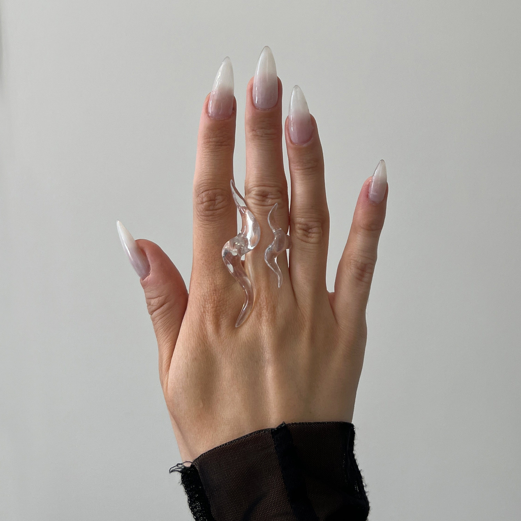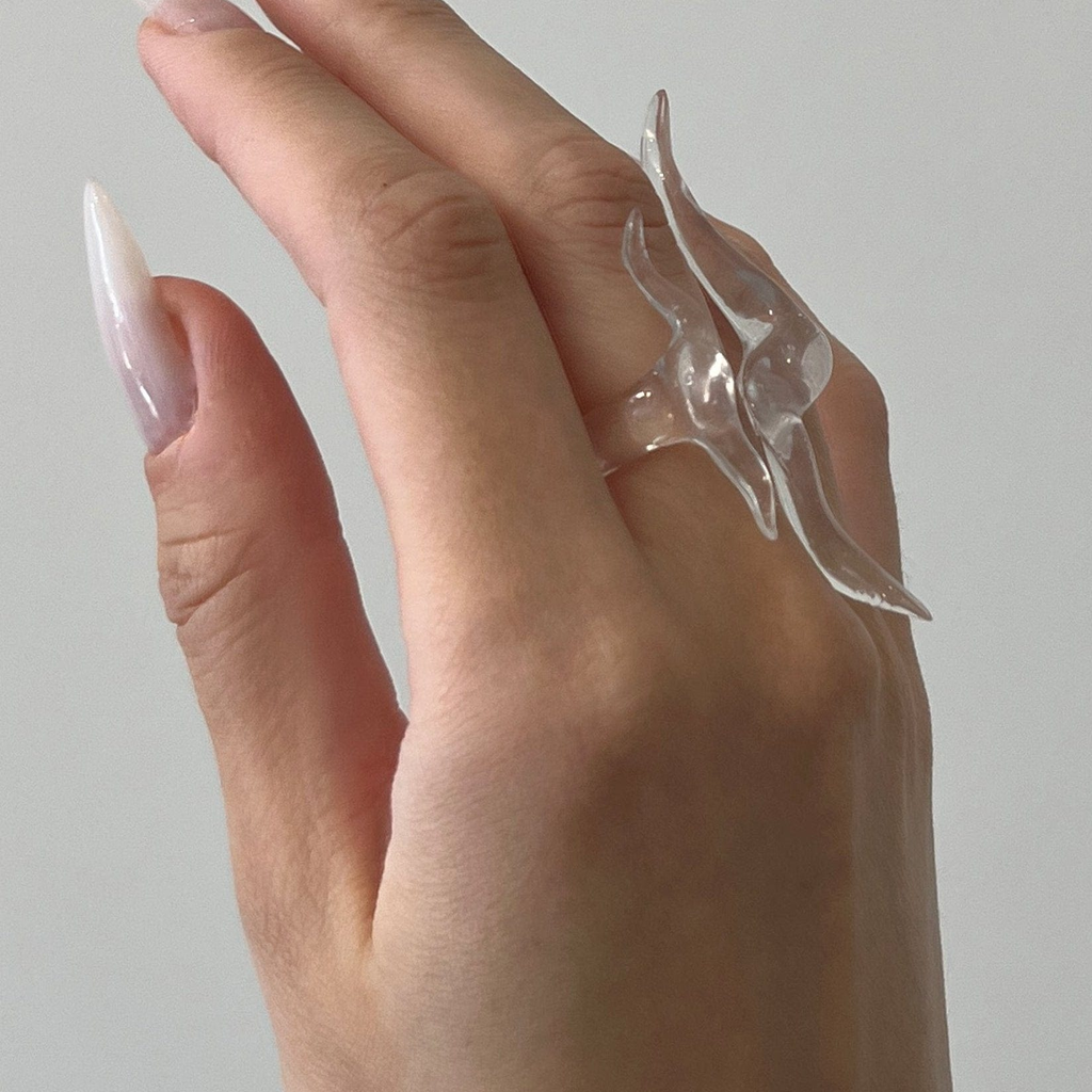 3D-printed transparent ring. Inspired by the organic beauty of nature, this ring has an abstract sculptural design. Each piece is finished by hand to achieve a unique design.