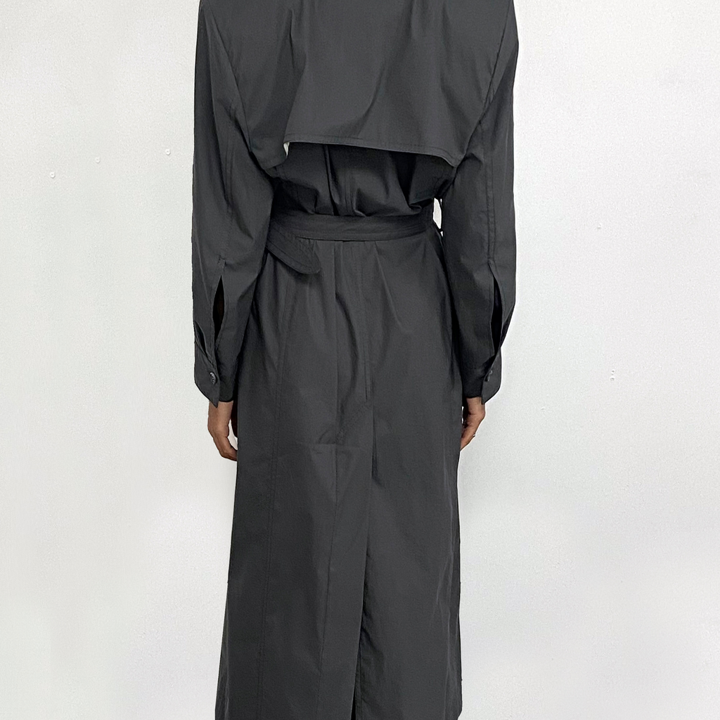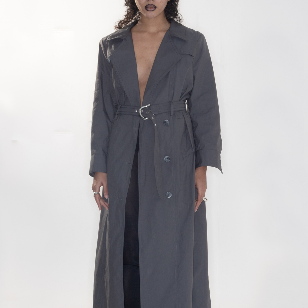Relaxed fit Single Breasted water repellent trench coat. Welt pockets.