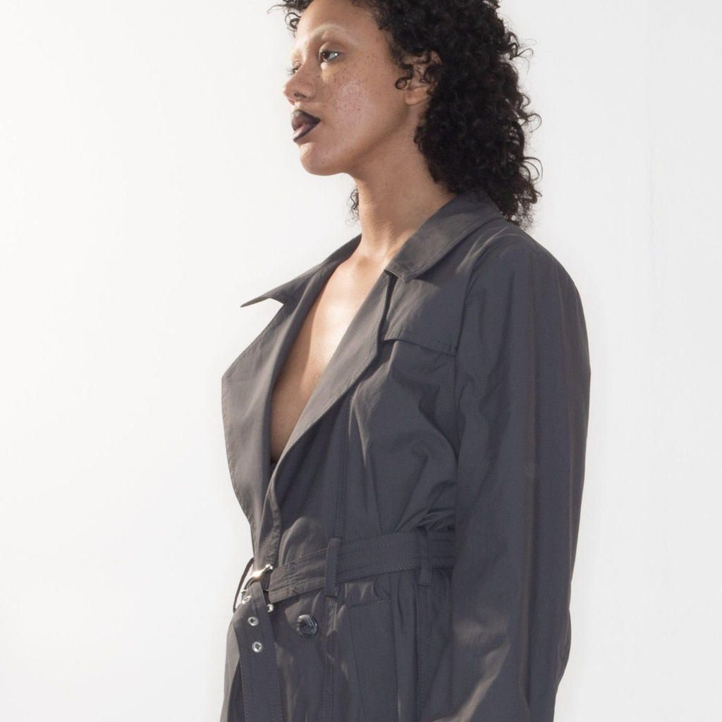 Relaxed fit Single Breasted water repellent trench coat. Welt pockets.