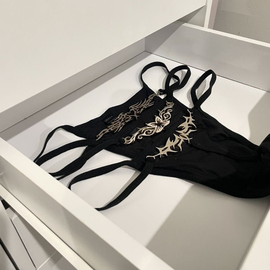 Featuring stainless steel hardware, MOTIRA’s thong collection is inspired by the Y2K era – think sexy lower back tattoos and low-slung waistlines.