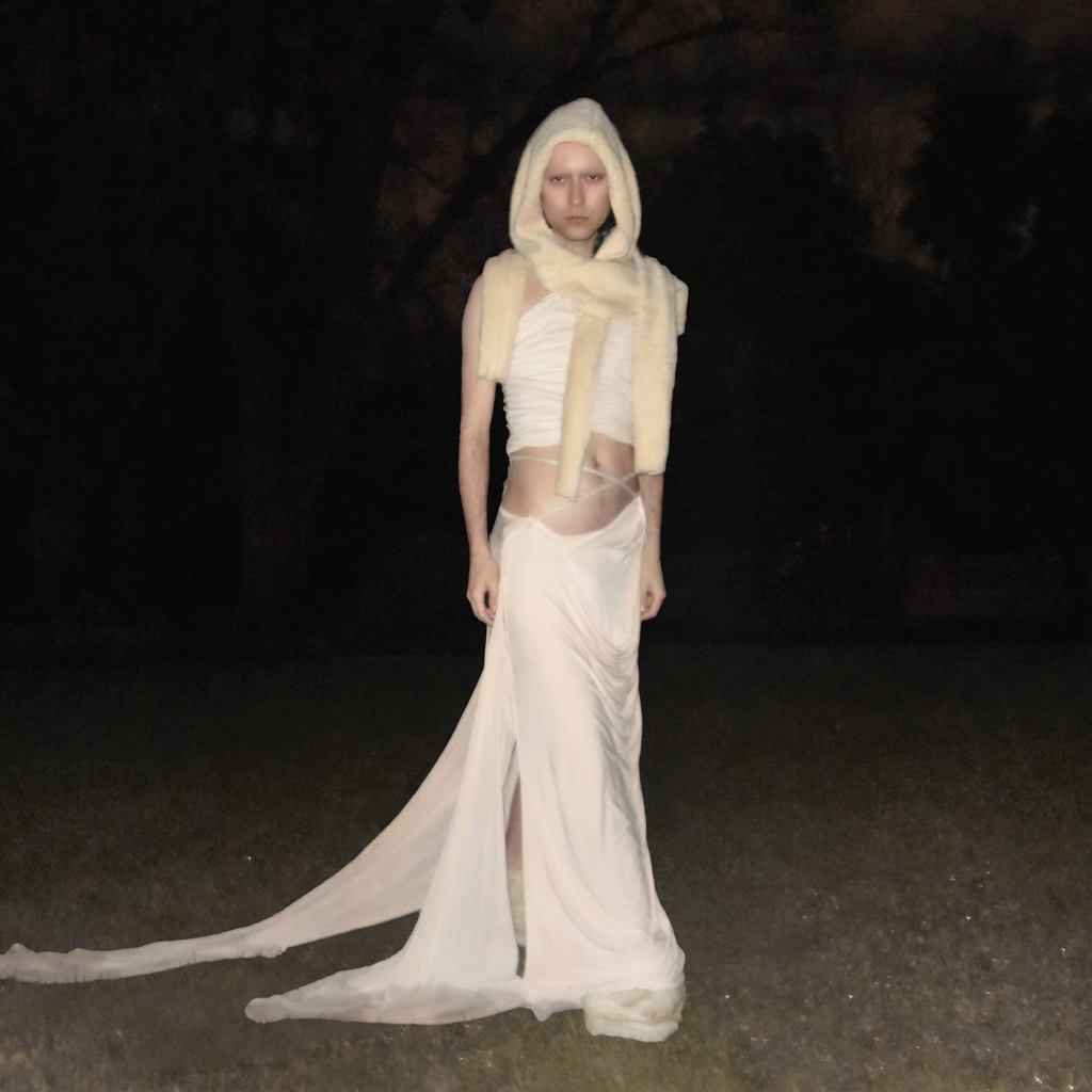 Textiles and tactics find new harmonies through the work of Jules Bramley, replicating natural uniqueness and earthly splendour. This capsule is an exploration into rebirth and transformation. Featuring organic textures, deconstructed shapes, drapery and asymmetrical features. 100% wool fabric is manipulated through deconstructing, felting and sewing with some pieces dipped and coated in natural rubber latex.