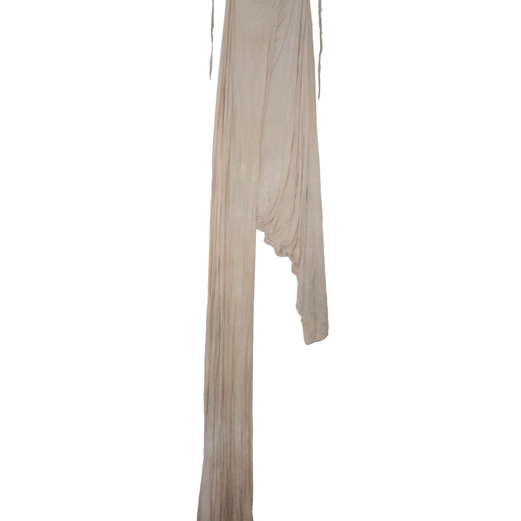 100% merino wool knit maxi skirt, multi-layered, hand draped and sewn. art finished with an airbrushed gradient stain and decayed linen ties.