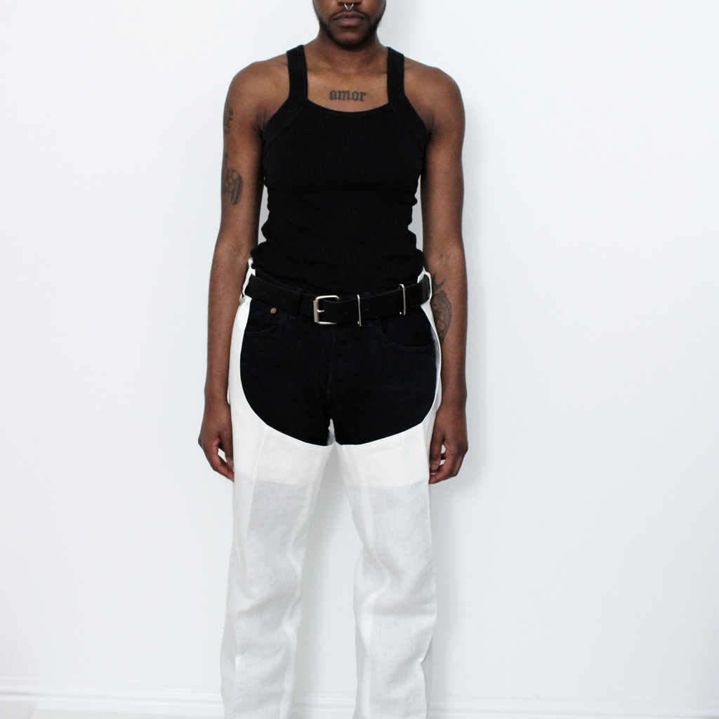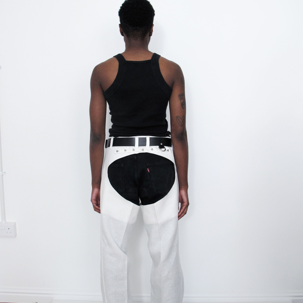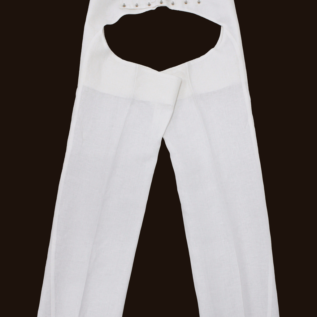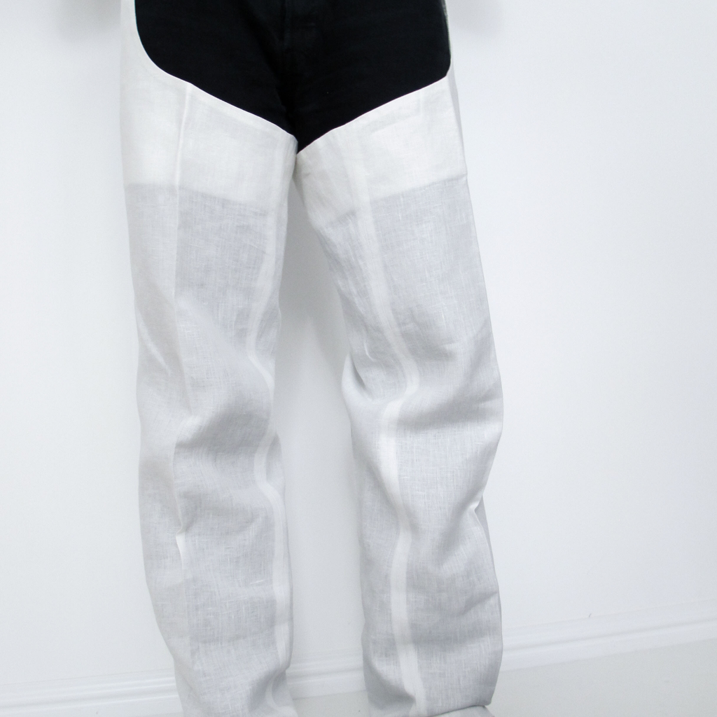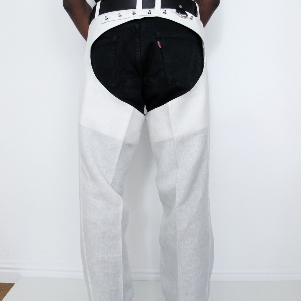 SIZE S/M 28-32INCH WAIST, OUTERLEG LEG 105CM, THIGH 68CMFits true to size (The model is 5”6 and wears the chaps with the TEO leather belt)