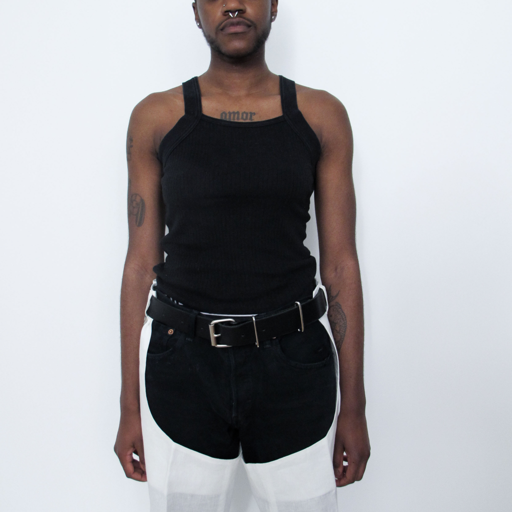 Mid waisted, straight leg with adjustable back, (Belt not included)
