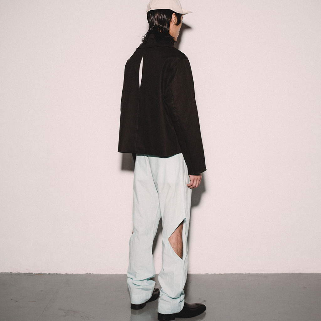 Collaboration with Polish designer, BODYHOLES, it's asymmetrical brim can be twisted and secured on the side or left to hang effortlessly. Carefully crafted by local milliner in Poland, the cap also features an adjustable snap system at the back, it offers versatility.