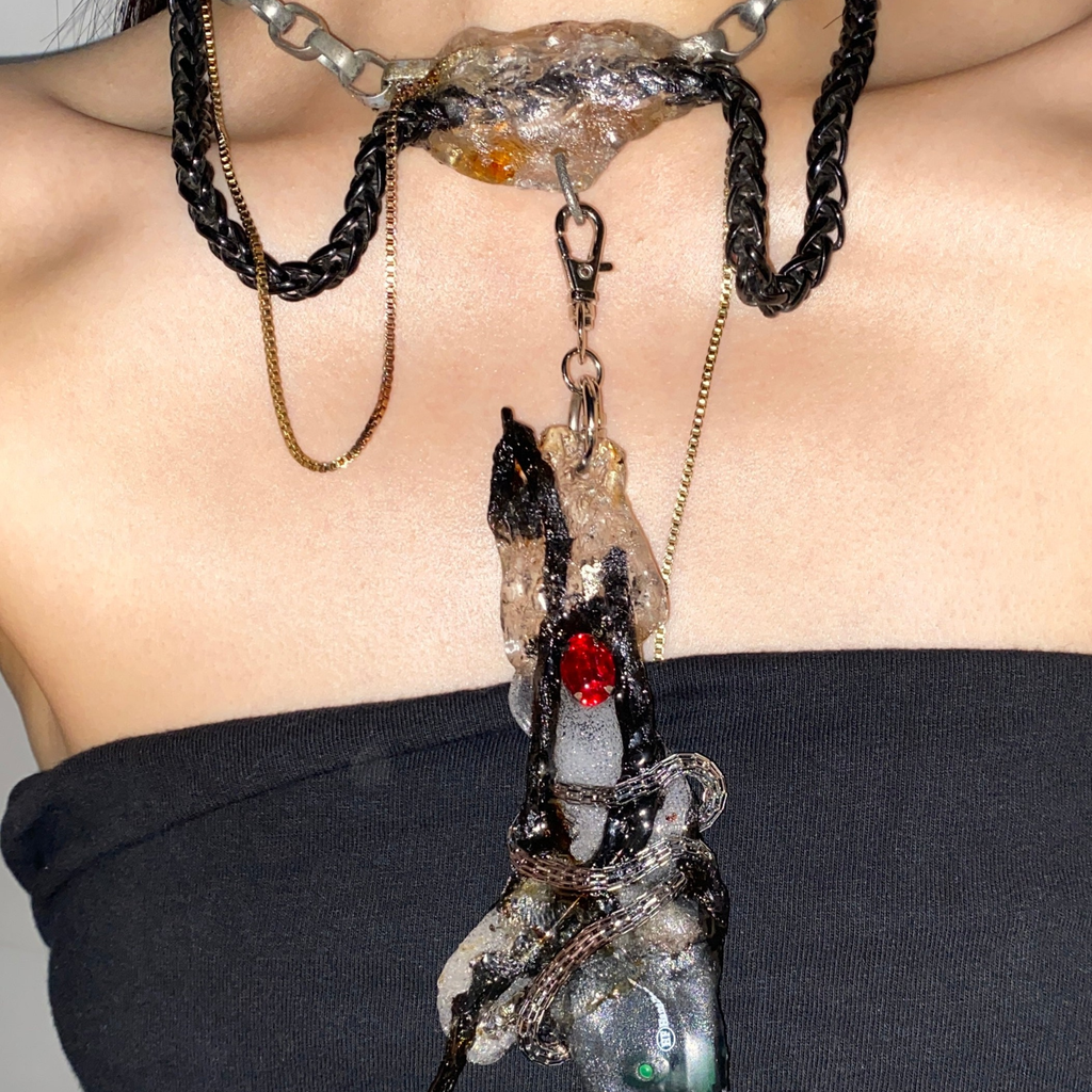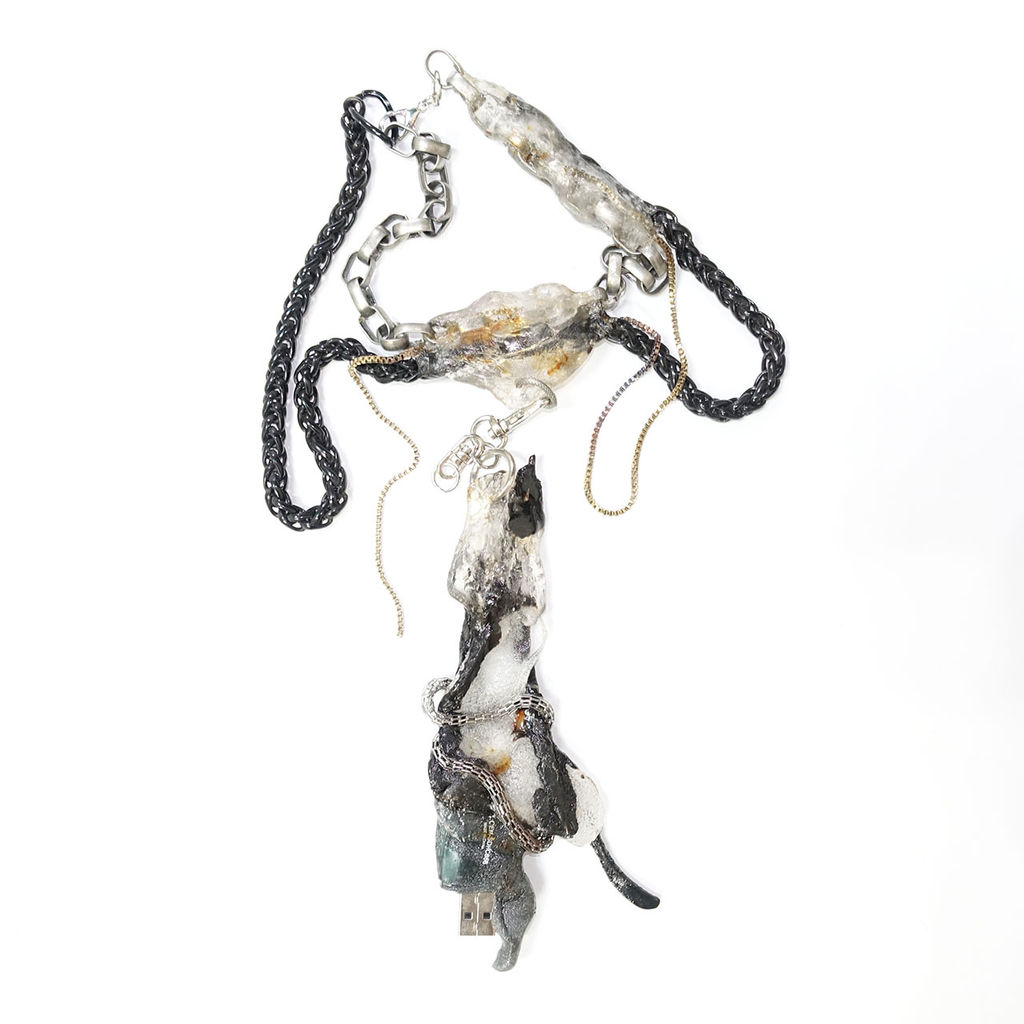 Upcycled materials: resin / mesh tube / metal chain / synthetic plastic polymer
