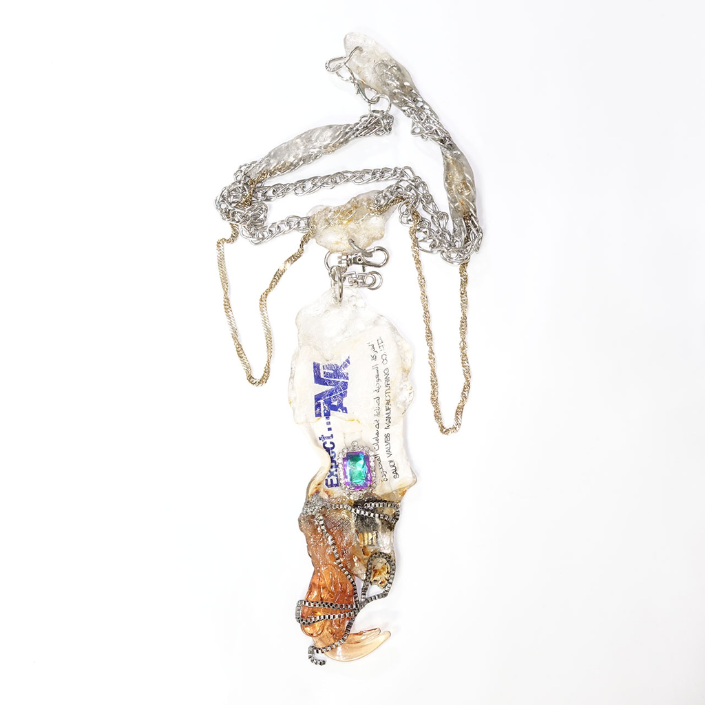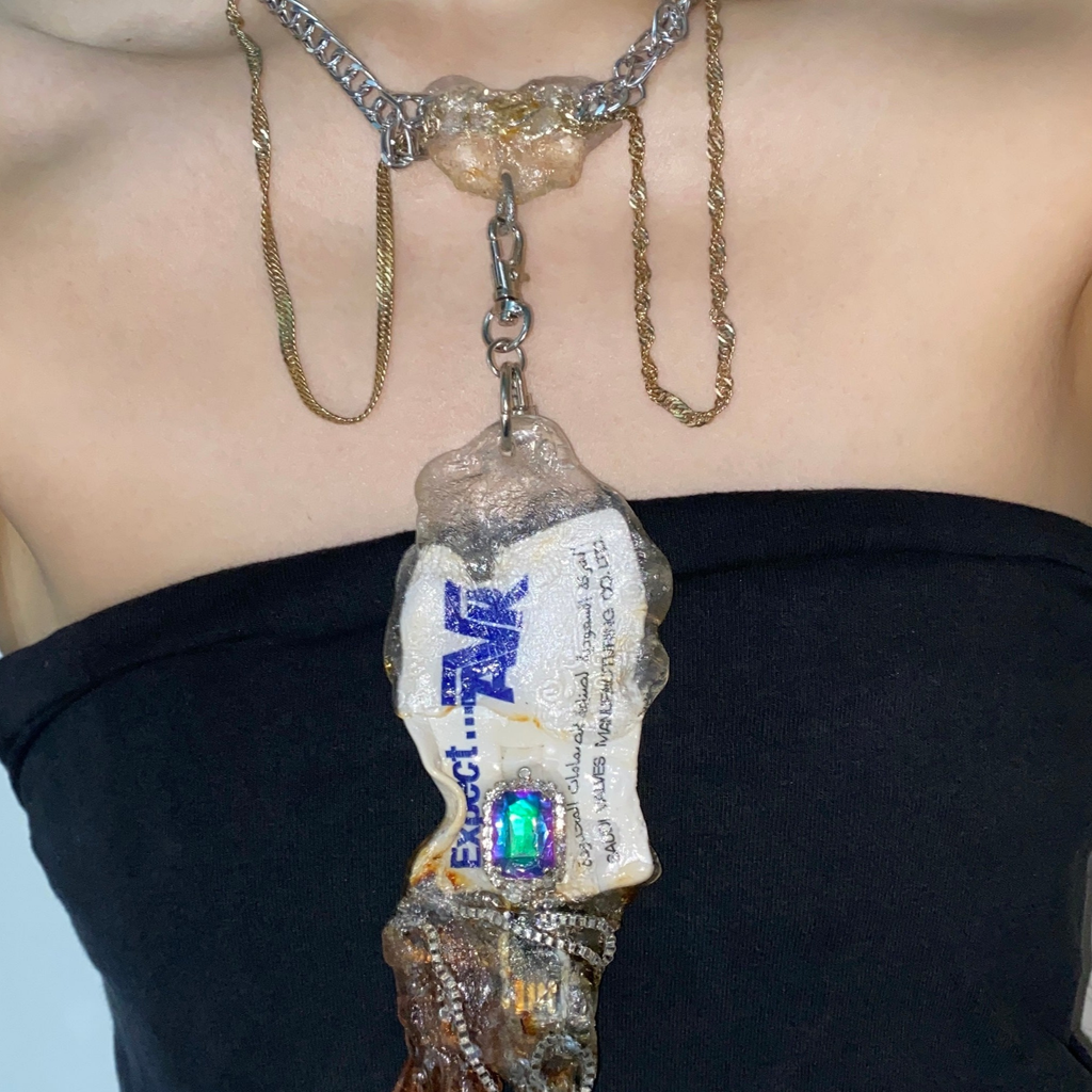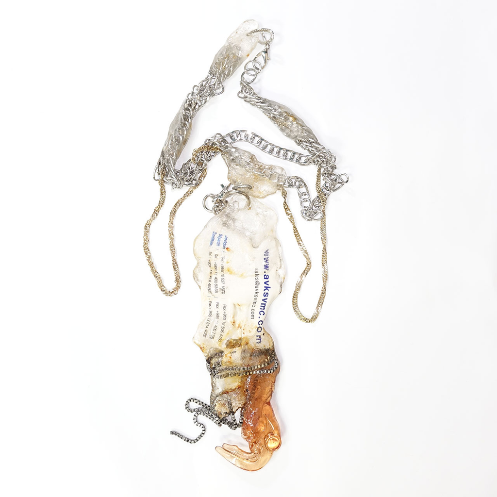 Upcycled materials: resin / mesh tube / metal chain / synthetic plastic polymer