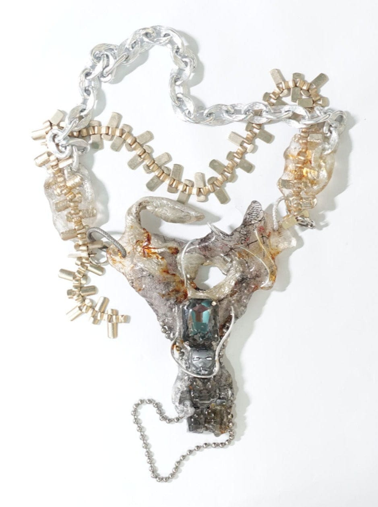 Upcycled materials: resin / mesh tube / metal chain / synthetic plastic polymer