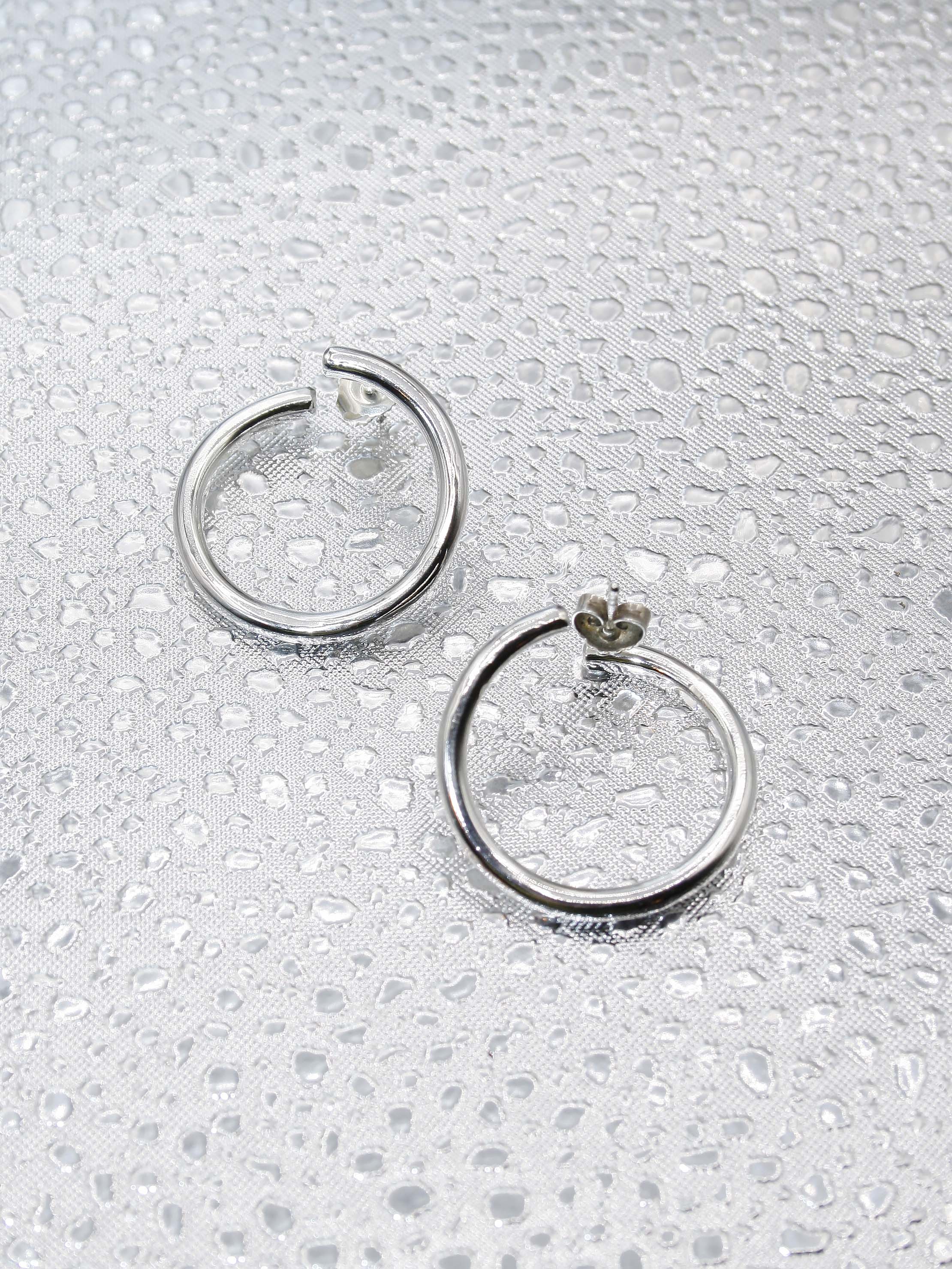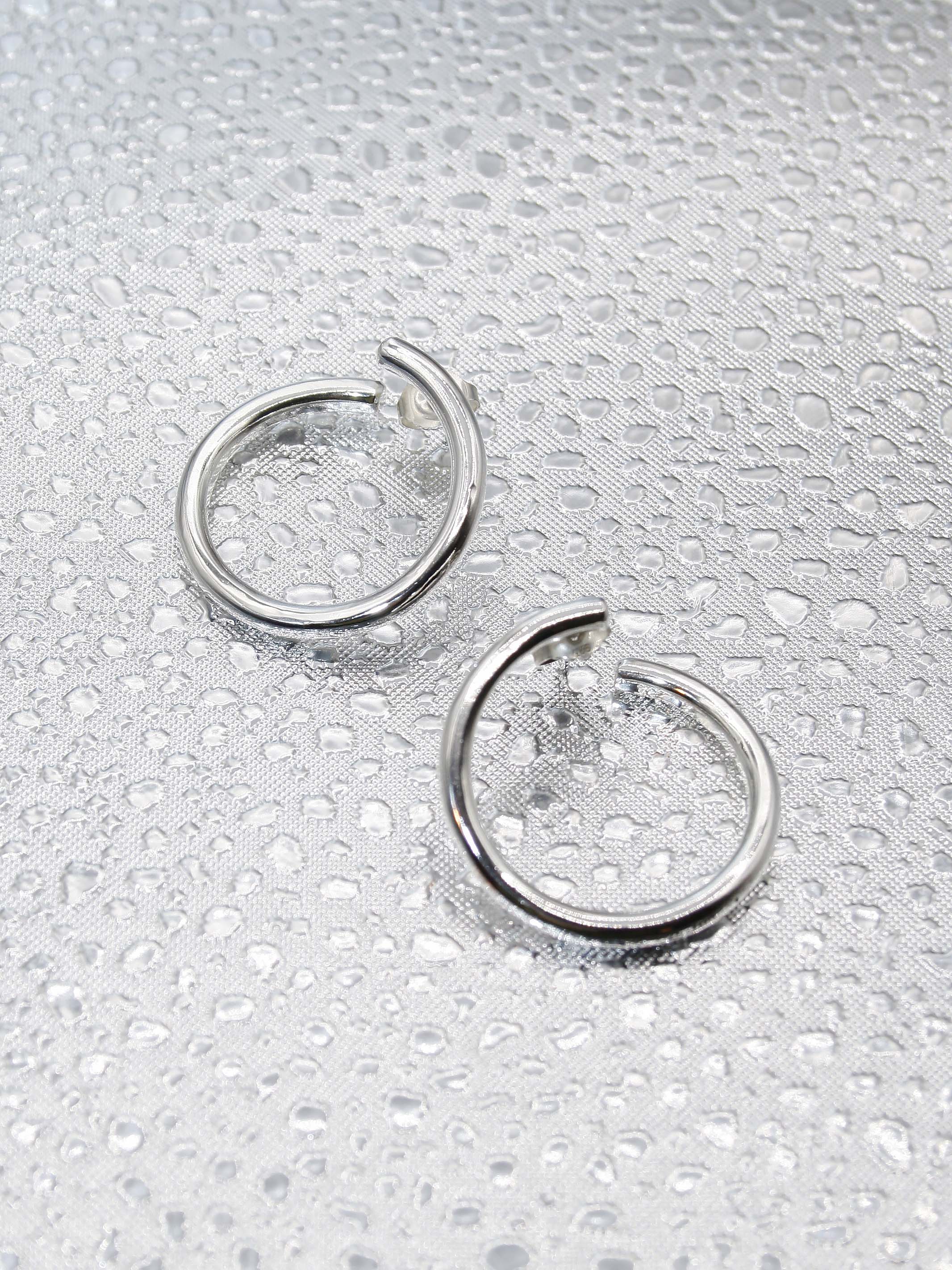 Recycled sterling silver.Handmade earrings crafted from recycled sterling silver, featuring big silver hoops with a twisted detail that folds around the earlope. A signature piece from the lunar collection, also comes in a smaller size.
