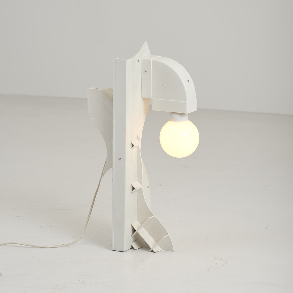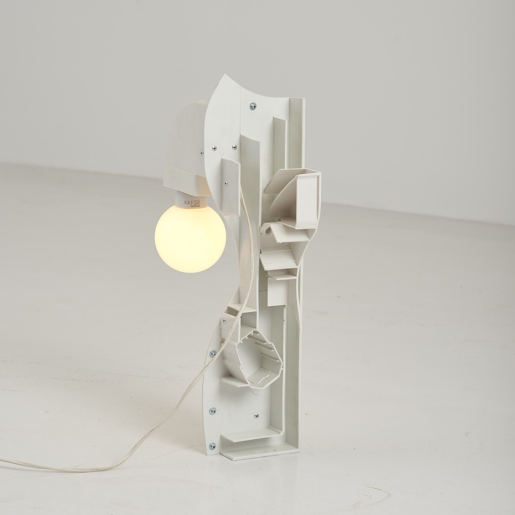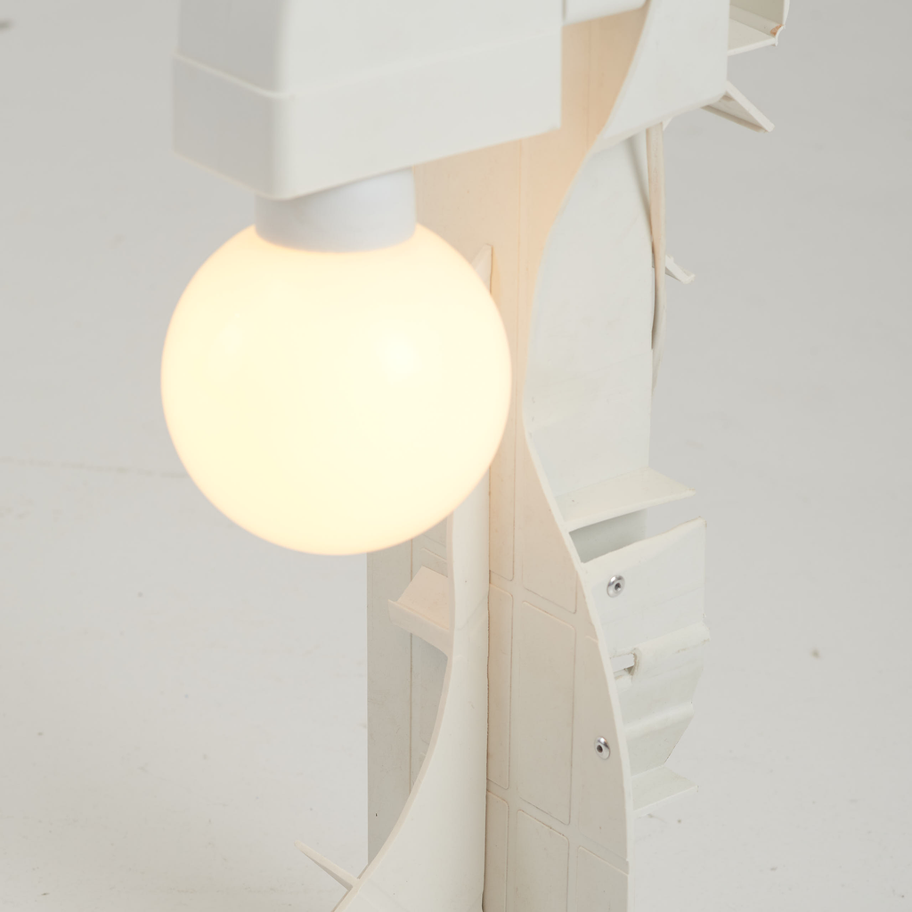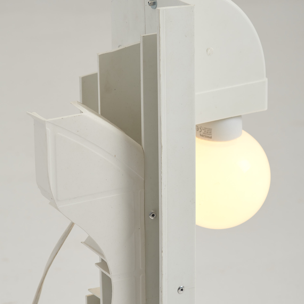 Wave tower tube lamp made from upcycled materials.