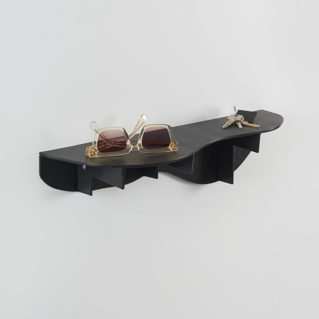 Wave wall shelf by Pierre Castignola made from upcycled materials.