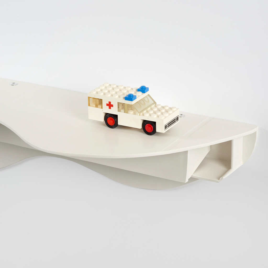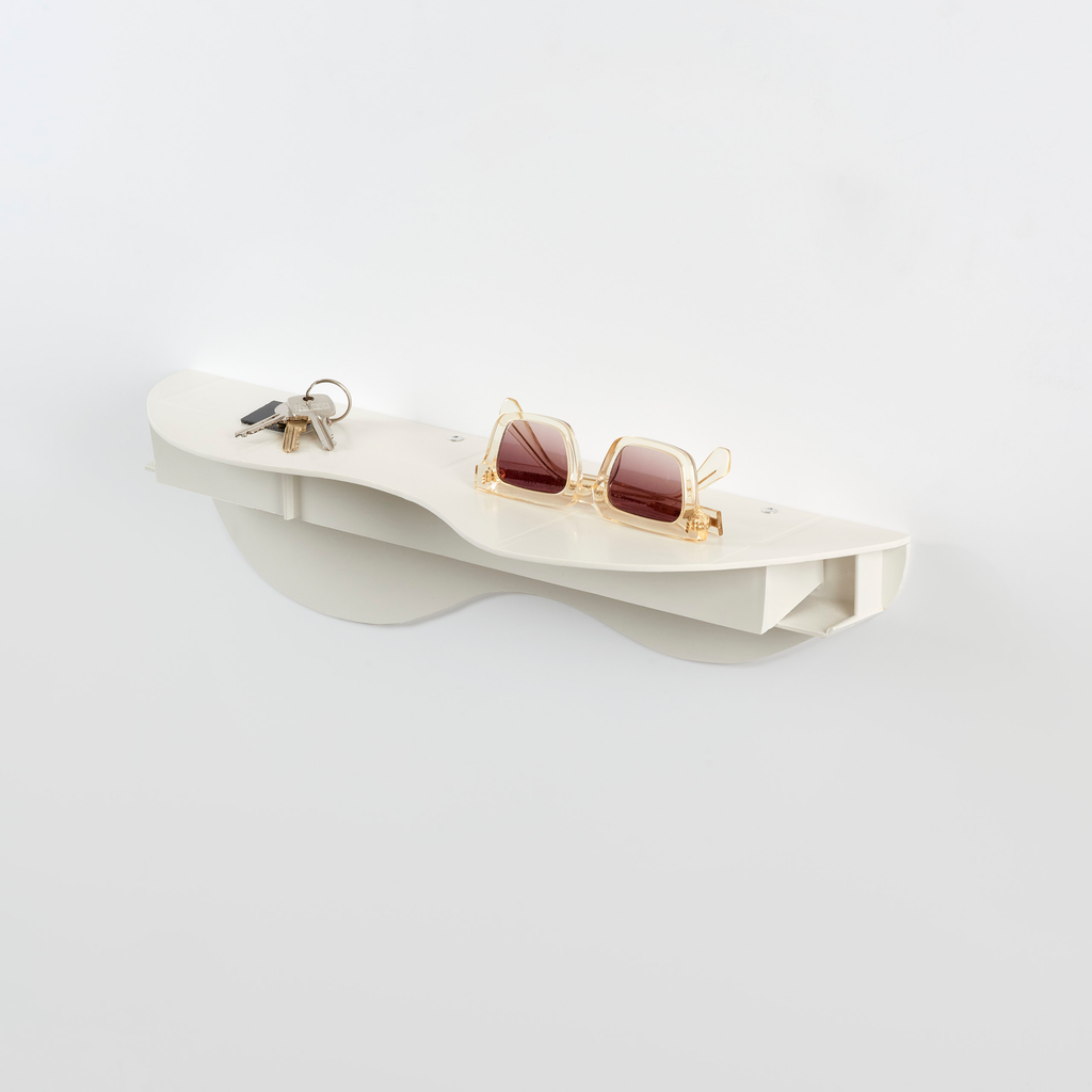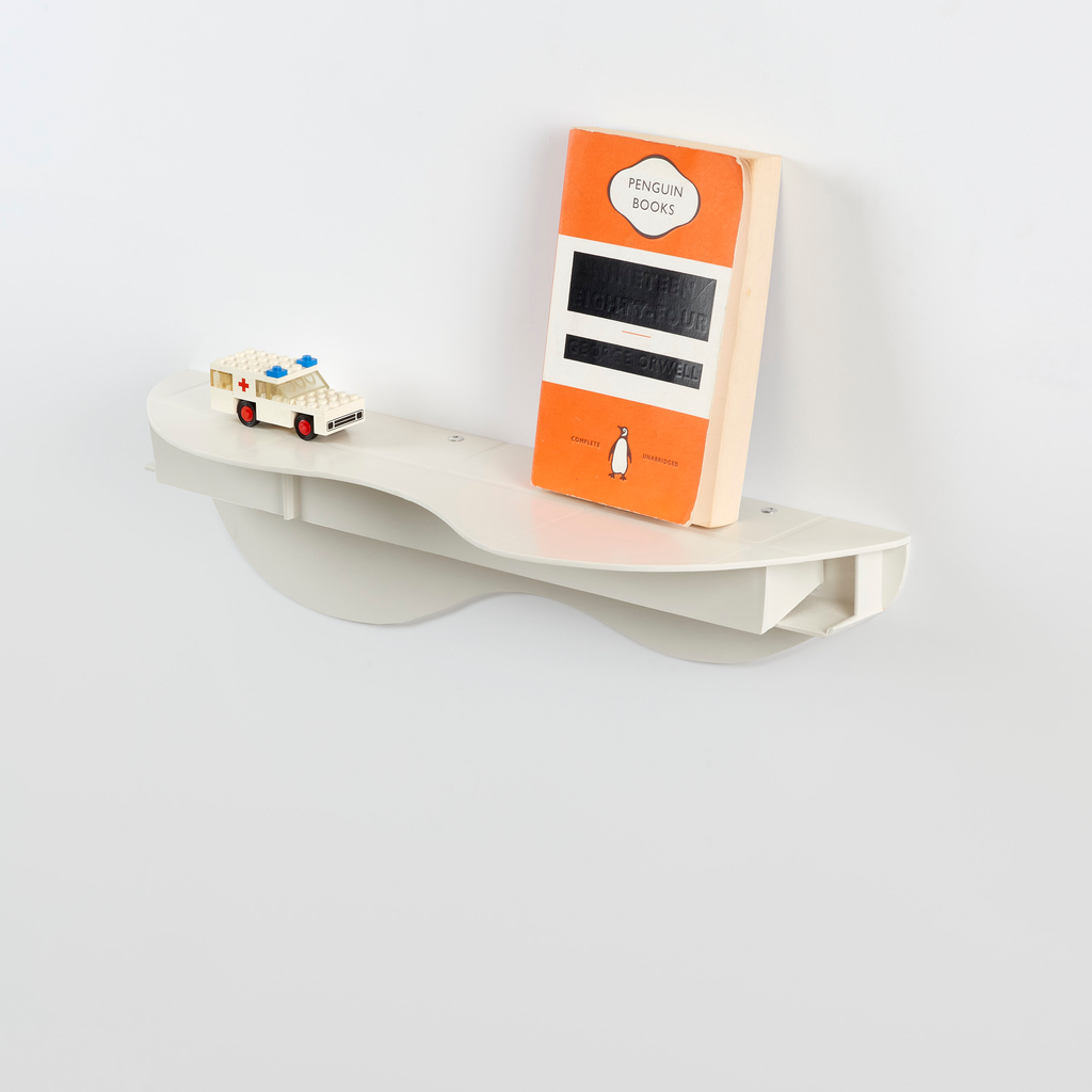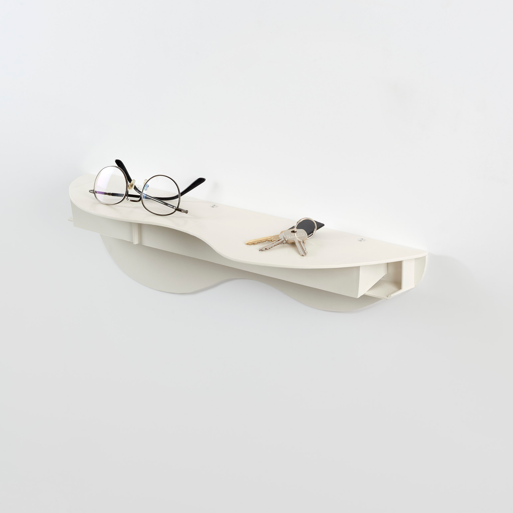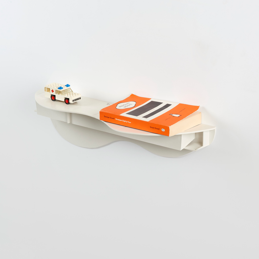 Wave wall shelf by Pierre Castignola made from upcycled materials.