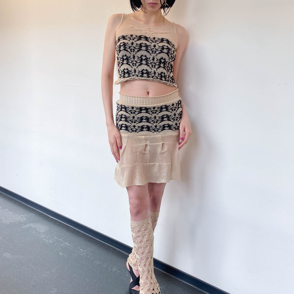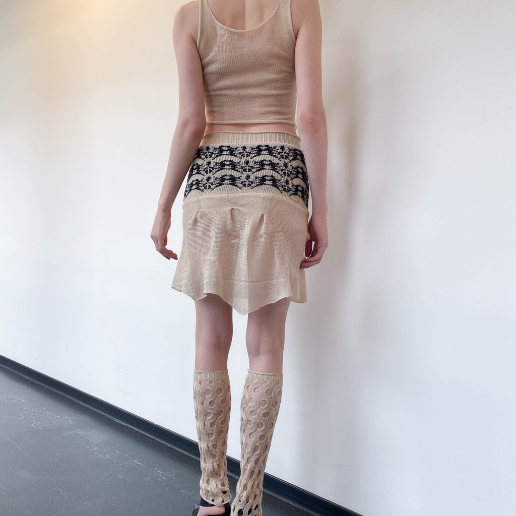 Knitted wavy lace knee-high leg warmers by Calissa Teiniker