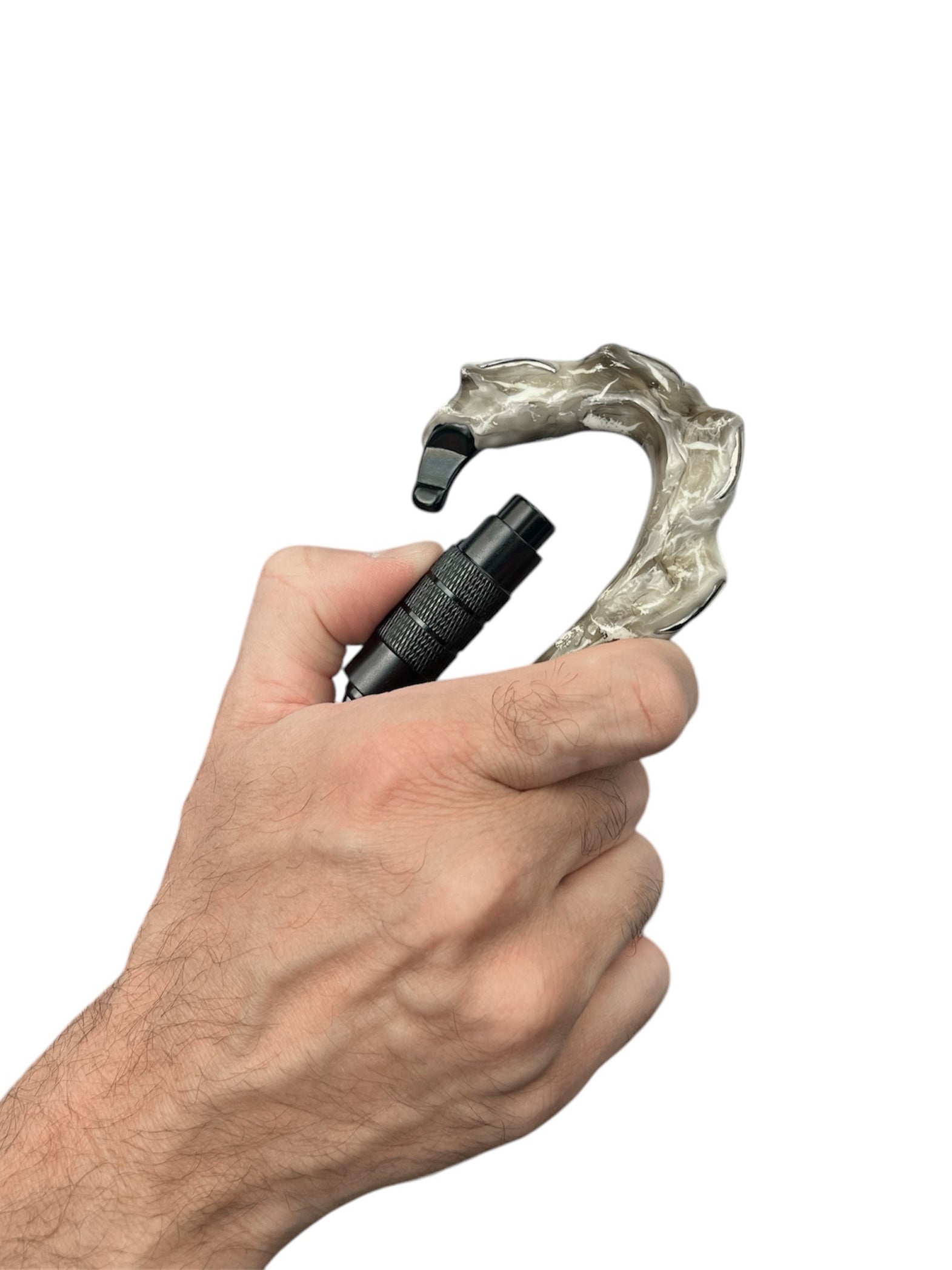 Сarabiner Climbing carabiner made of metal alloy load 23 kN Accessory for a purse or jeans/pants Expect minor changes in color and shape - each piece is made and painted by hand Use a wet cloth for cleaning