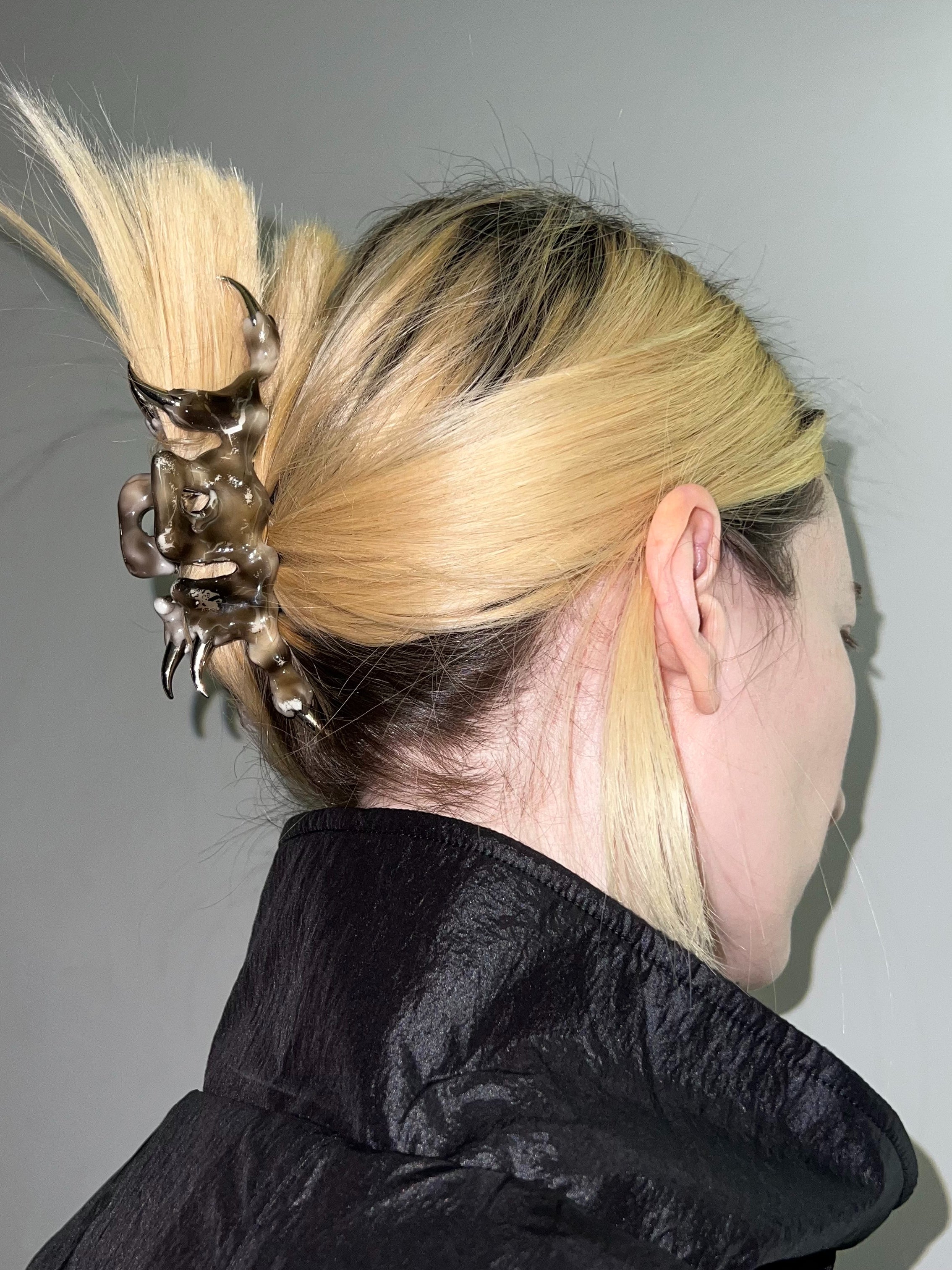 CASPER DIY reimagines the familiar through a futuristic lens, merging influences from sci-fi cinema, fantasy worlds, and underground style. His creations fuse mechanical, organic, and extraterrestrial elements to craft objects that feel both relic and prototype. Everyday items—glasses, flash drives, hair clips, or sneakers—become raw material for transformation.
