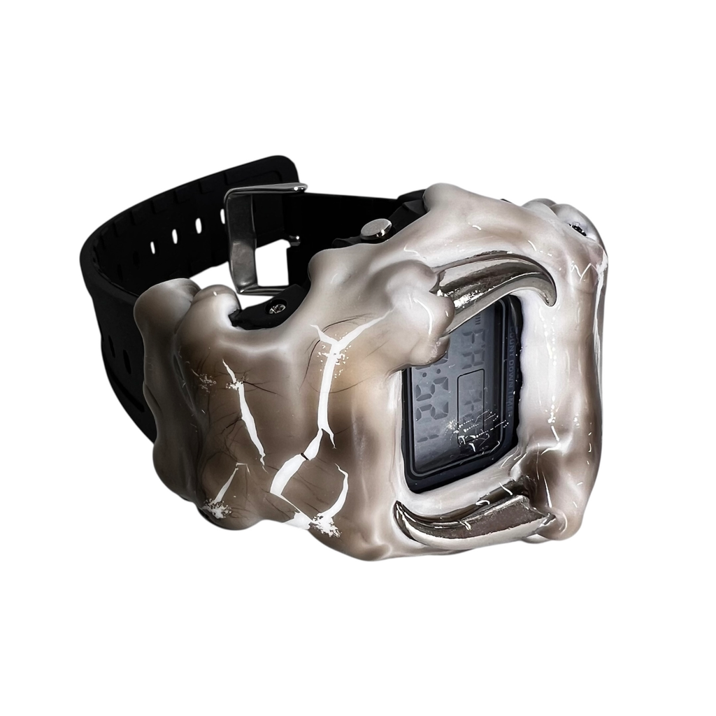 CASPER DIY reimagines the familiar through a futuristic lens, merging influences from sci-fi cinema, fantasy worlds, and underground style. His creations fuse mechanical, organic, and extraterrestrial elements to craft objects that feel both relic and prototype. Everyday items—glasses, flash drives, hair clips, or sneakers—become raw material for transformation.
