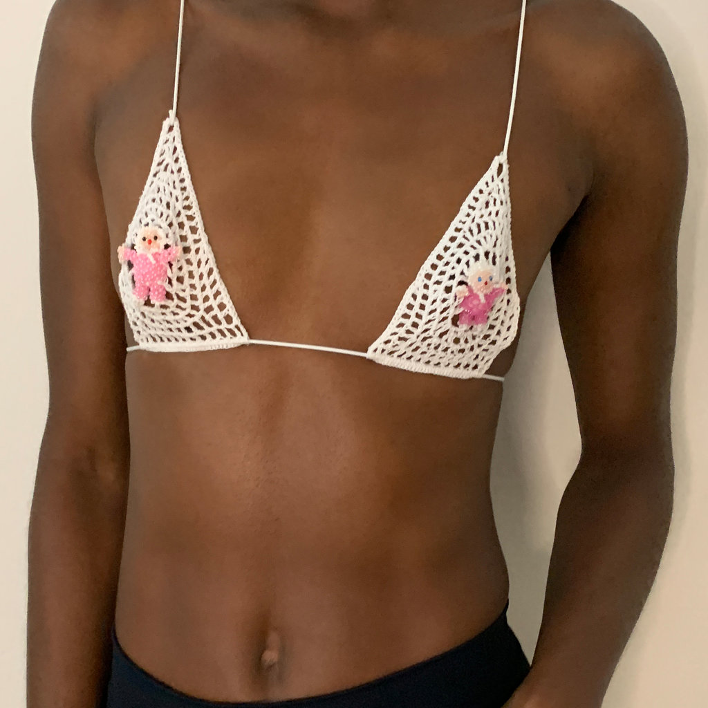 Lou de Bètoly is a French designer who works and lives in Berlin. Her main inspiration derives from chaos, surrealism, nostalgia, decadence, extravagance and oneirism. Adorned with embellishments, her intricately sensual crochet pieces reiterate her ‘wild at heart’ state of mind.
