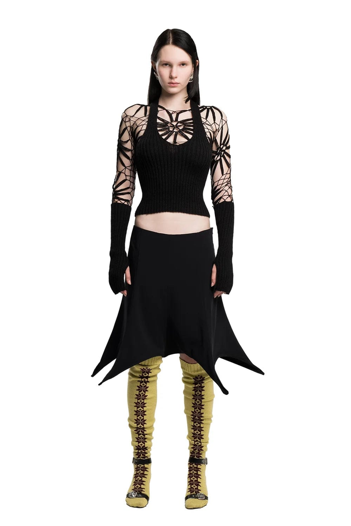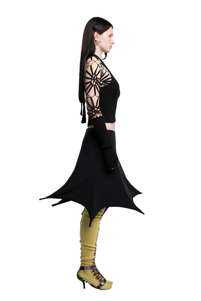 Nylon midi skirt featuring a spike design throughout. Hidden wire at the bottom to keep the shape. Zip closure at the side.