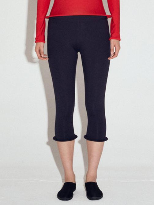 Wired hem basic leggings in Black. Fitted leggings in body shape. Capri length. Steel wire inserted at the hem.