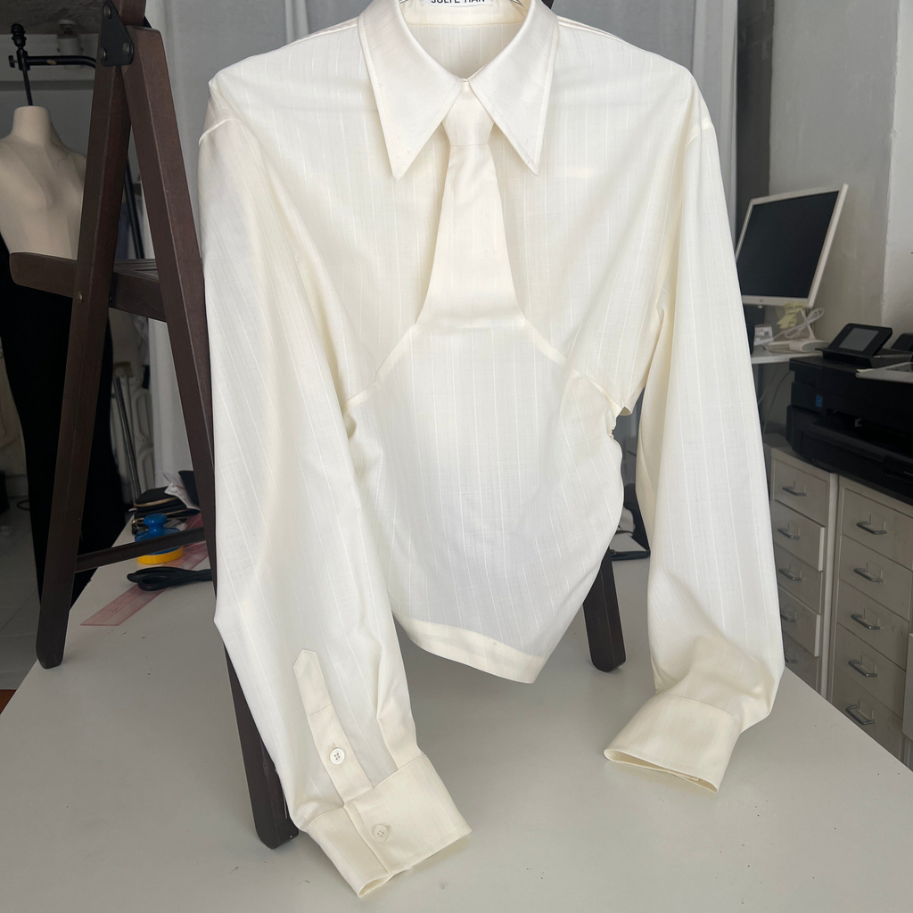 Based in Korea, Independent brand Julye Han produces everything close to their studio. The brand translates the overall inspiration designer receive from life into clothing. Focusing on experimental pattern interpretation and research, the brand combines office clothes with y2k silhouettes.
