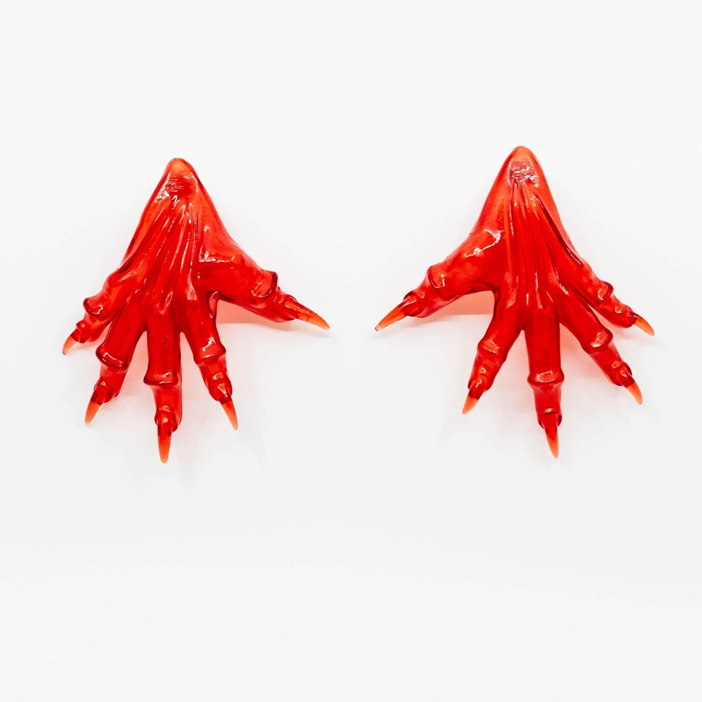 translucent red resin paw earrings